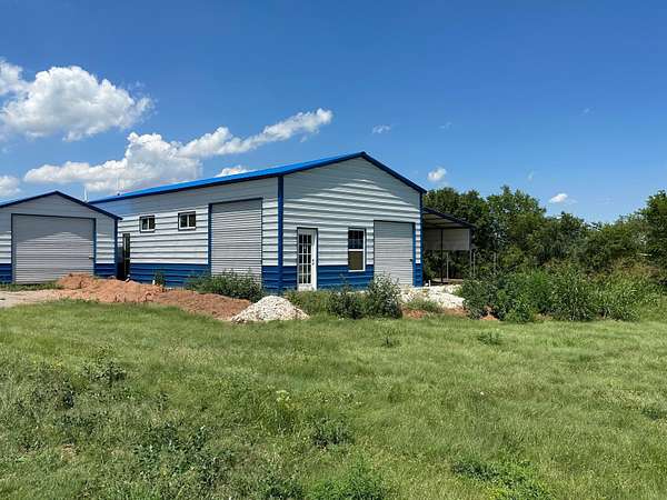Incredible Opportunity to finish out for a Home and/or Investment! Residential or Commercial! Mobile home friendly! Barndominium built in 2021 -everything there to complete it!! Buildings include 45 x 60 Barn -4 stalls, cement; 54 x 50 Shop - wired, new 100 amp service ready to tie in; 16 x 30 w/dirt floor; 24 x 55 w/Lean-to; 12 x 20 Garage w/concrete floor; 12 x 20 Animal Shelter! Shop has 3 sections including kitchenette, Office/ Bedroom, Full Bath. All on approx 38 lots or 2.5 acres from south end of Texas all the way back to the trees and gully! Water & sewer ready to connect, underground utilities. Can be divided for purchase! Ask for details!