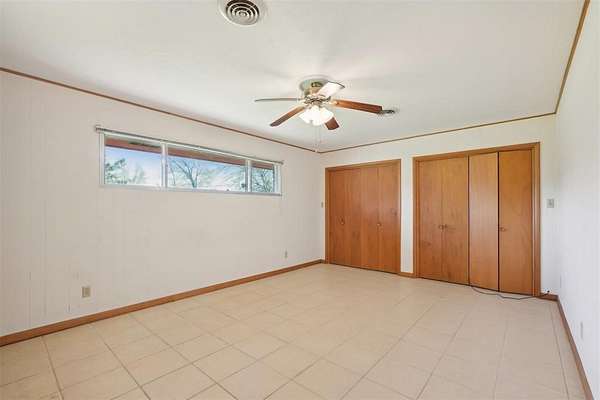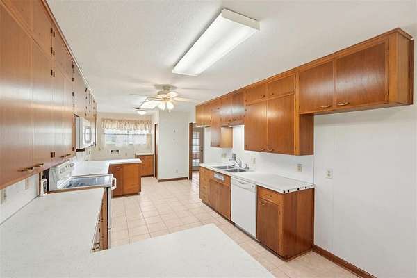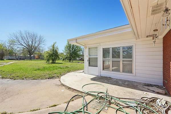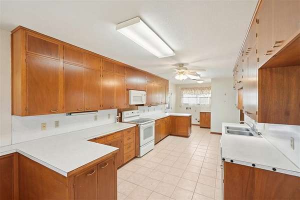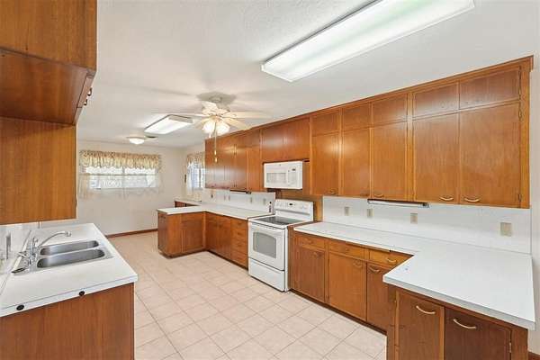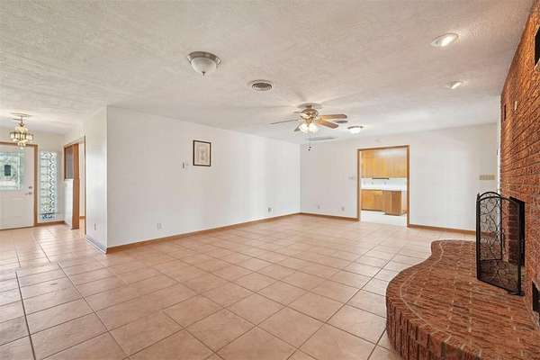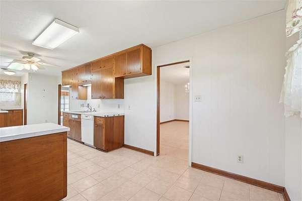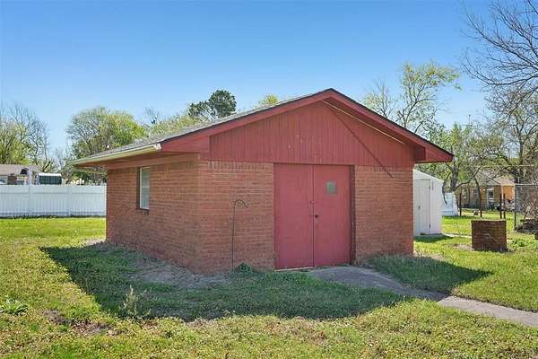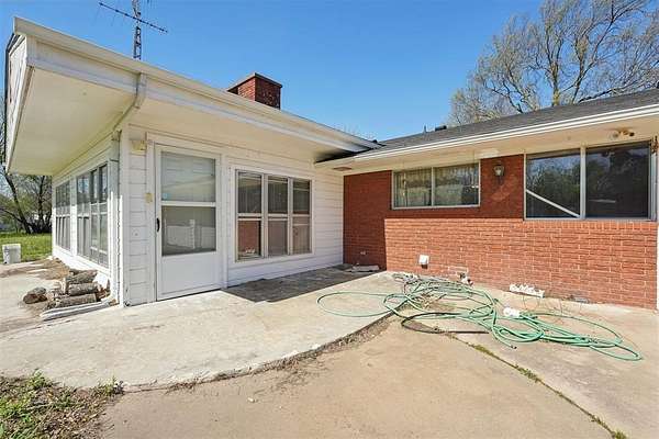Escape to this serene brick home, a peaceful retreat situated on almost two sprawling acres within Holdenville's city limits. Featuring three bedrooms and two bathrooms, the home boasts easy-care tile floors throughout. Enjoy the privacy of a secluded setting, set back from the road and shaded by majestic oak trees, while still being conveniently close to town amenities. The property includes a two-car garage, two outbuildings, a kennel, and fruitful pear trees, offering a true taste of country living. Relax on the enclosed porch and savor the backyard views. With easy access to OKC, Tulsa, and Dallas, this charming home is ready for you to call your own.