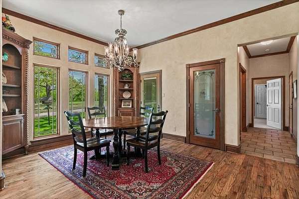 Equestrians will appreciate the 14 horse stalls, multiple fenced pastures with loafing sheds, and a well-appointed foreman's home. An oversized shop with an adjacent enclosed and insulated RV or horse trailer parking allow for even more versatility for guests, hobbies, or home-based business needs. And with lightning-fast fiber optic internet, you'll stay connected no matter your pursuits.
