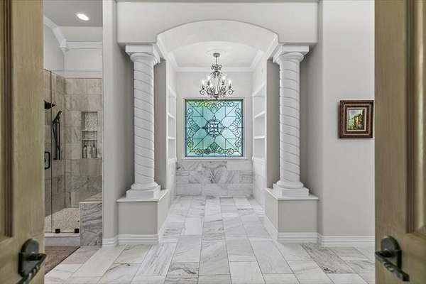 Step through the private gated entrance and up the concrete circle drive to find a masterfully crafted residence surrounded by mature hardwoods and drought-resistant landscaping. Inside, high-end finishes abound--brand new Pella windows, wood flooring, quartz countertops, new appliances, a smart camera security system, and even a safe room, all curated with a designer's eye.