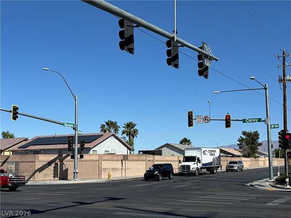 From the I-15 freeway to North Lake Mead, Right on Losee Rd., Turn Left on E. Carey Ave, property is on the Southeast corner of the intersection at Carey and Revere.