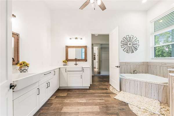 - Bathtub, Garden Tub Roman Tub, High Ceilings, Kitchen Island, Pantry, Primary Downstairs, Walk In Closets