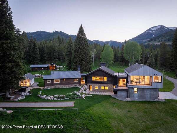 Introducing Gill Huff Ranch, a one-of-a-kind Jackson Hole legacy property located at the foothills of the Teton Mountain range. Situated on 199 pristine acres with scenic mountain views and live water, owners and guests alike will revel in the combination of luxurious finishes and rich history of this estate. A winding, private road leads you to this to this oasis which feels hidden, yet is just a 5 minute drive from the charming town and amenities of downtown Wilson. A combination of original log cabins were fully renovated and integrated into newer mountain modern construction creating a perfect balance of timeless architecture and place that captures and blends into this beautiful mountain setting. This is a rare find that cant be replicated.