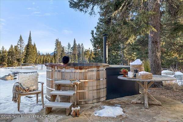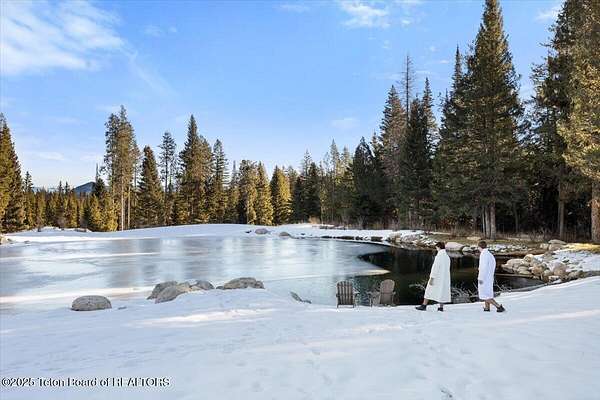 Est $94,204/moOne-of-a-kind, 199-acre private compound at the base of Teton Pass, in Wilson, Wyoming. Designed for gathering friends and family, with beautifully restored historic cabins combined with new, modern construction. Floor-to-ceiling windows capture views in all directions of mountains, forest, and a reflective pond. Enjoy wellness-inspired amenities including an outdoor sauna house, wooden barrel hot tub, outdoor fireplace, and pond that can double as a cold plunge- fed by a year-round mountain stream. A magical .5 mile driveway delivers you to the property set in a natural meadow. Enjoy direct access to millions of acres of the Bridger-Teton National Forest; trail networks, wildlife habitat, and backcountry recreation.