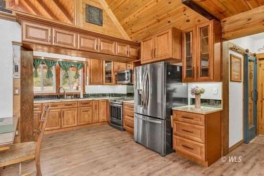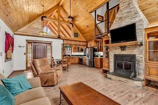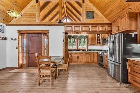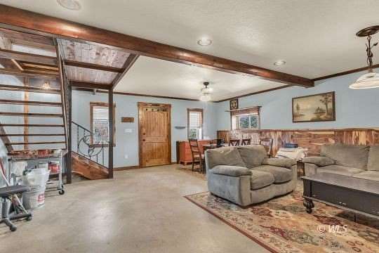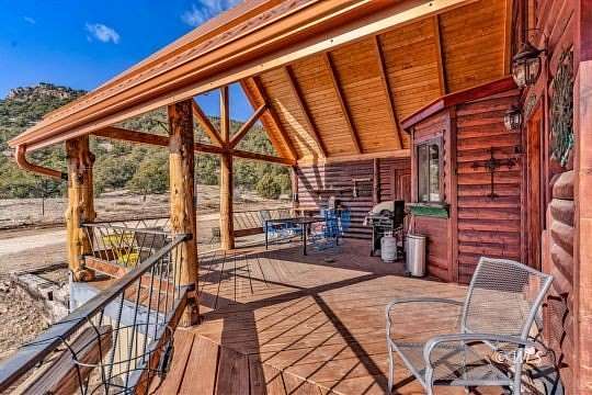 Nestled on 27.2 private acres, this custom 3-bedroom, 2-bath mountain retreat blends rugged beauty with exceptional craftsmanship. Built with ICF concrete walls for superior strength, energy efficiency, and quiet comfort, the home is wrapped in classic log siding that complements its natural surroundings. Inside, thoughtful customization is evident throughout-from rich hardwood floors to stunning granite countertops and quality finishes at every turn. The open, inviting layout is ideal for both everyday living and entertaining, while large windows bring the outdoors in. The lower level features a separate basement entrance and a convenient kitchenette, offering excellent potential for guest quarters, multigenerational living, or rental use. Surrounded by acreage that provides privacy, views, and room to explore. Adding to the property's versatility is a large Quonset-style workshop, perfect for equipment, hobbies, or projects, along with a small greenhouse for year-round growing. An attached oversized one-car garage provides ample space for storage and gear. This one-of-a-kind mountain property is a rare find.