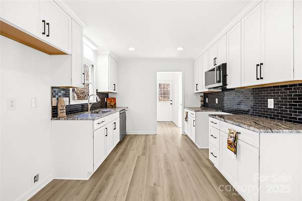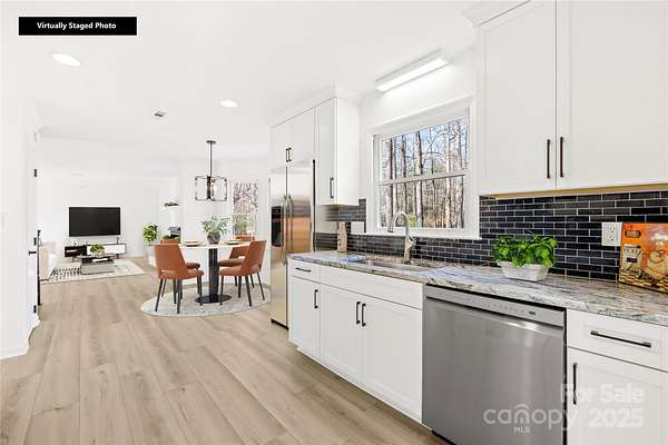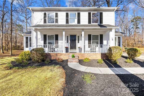 Beautifully updated Mint Hill home on 1.68 acres on a cul de sac, ideal for buyers relocating to the Charlotte area seeking space, privacy, and convenience. This 3BR/2BA residence features an updated kitchen and bathrooms, new flooring, and fresh paint throughout, offering a move-in-ready feel. Enjoy New LVP floors, a cozy fireplace, and a functional two-story layout. Relax on the inviting front porch or spend summer evenings on the back patio, perfect for entertaining or unwinding while overlooking the private yard. Convenient location with easy access to Charlotte, shopping, dining, and major roadways. A great opportunity to enjoy country living with city access.