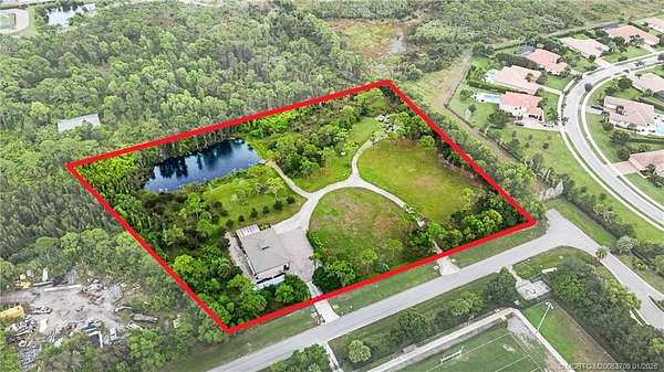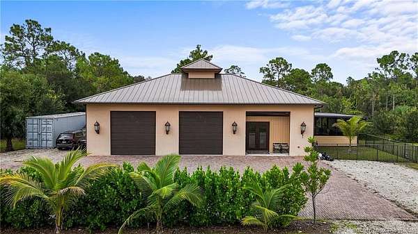 Est $11,464/moOne of kind property, 5 acres in the middle of everything with a 60x40(2,400 sq ft) top of the line air conditioned building. It has three electric 12ft role up doors with 20' ceiling. Exquisite 1/1 apartment, large kitchen laundry room and living room along with large outside screened sitting area. Property is fully secured with electronic gate. The building is on city water and sewer and the site has an additional water/sewer hook on the property for a home to be built. Seller has a building permit to pick up at the county for a 3,152 sq ft pool home,1,300 covered patio and pool. In addition a site plan with room for a 6,900 sq fit home all in your private oasis. 20 MINUTES to West Palm Beach and less to Jupiter