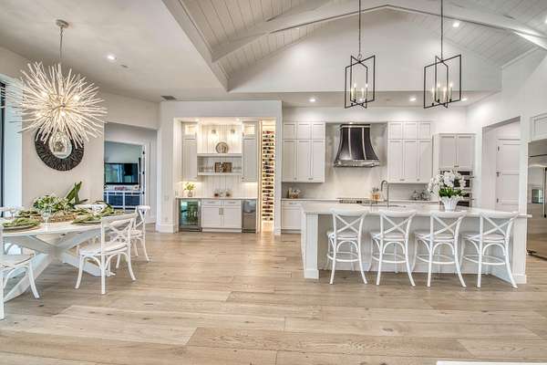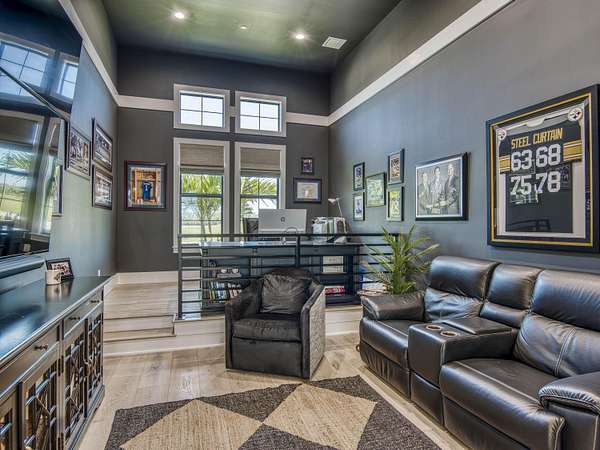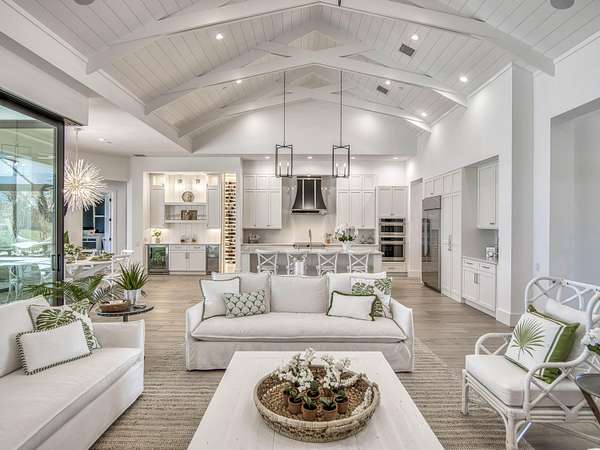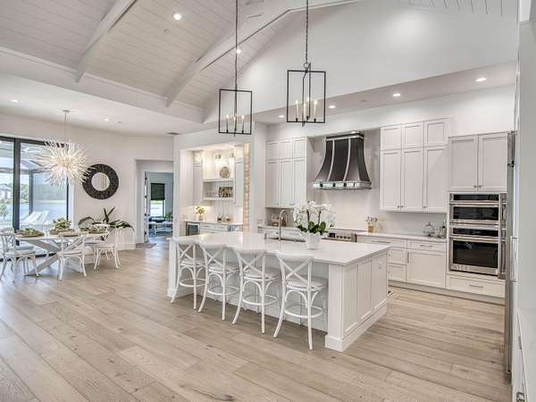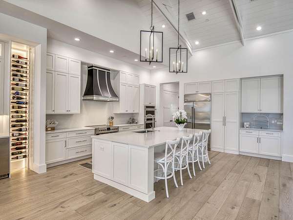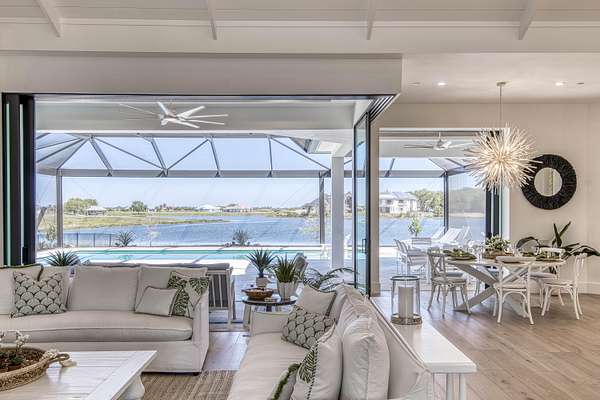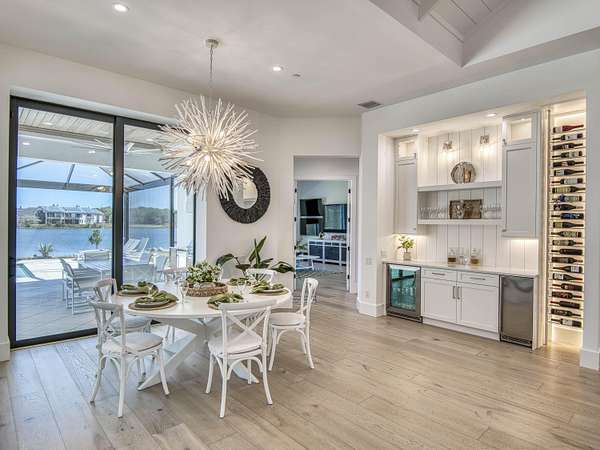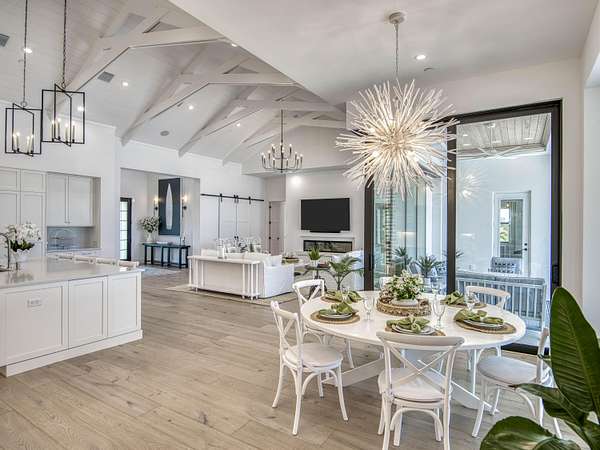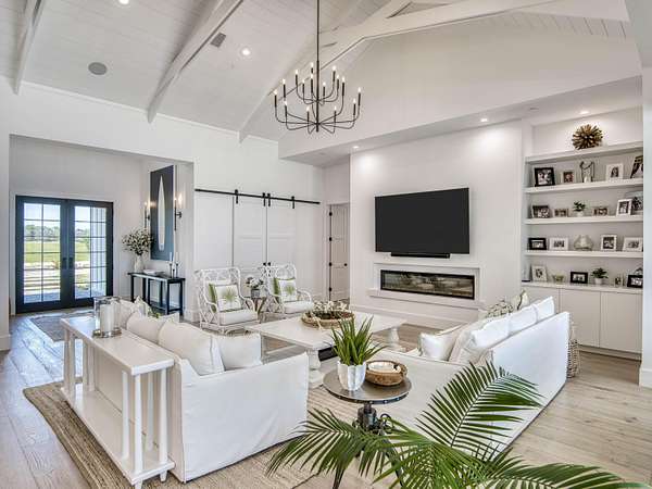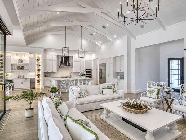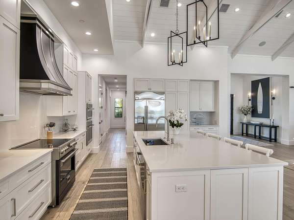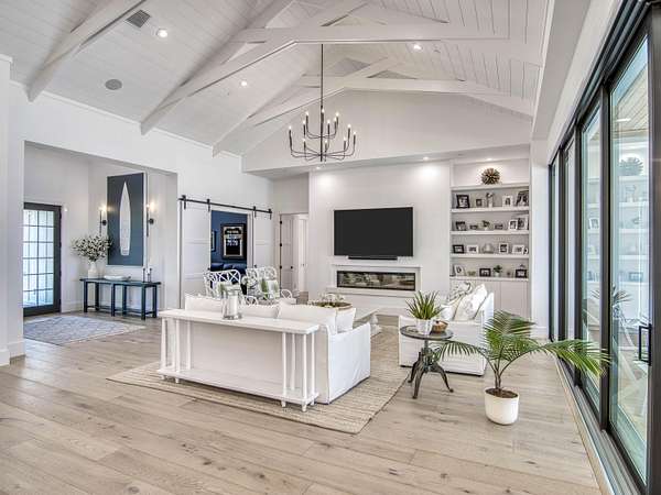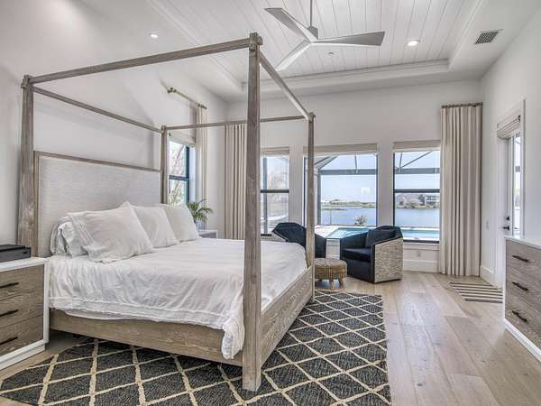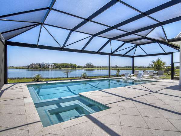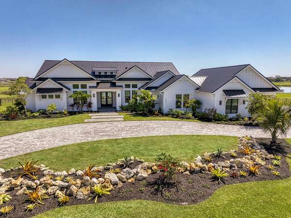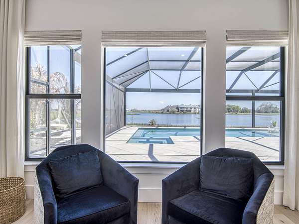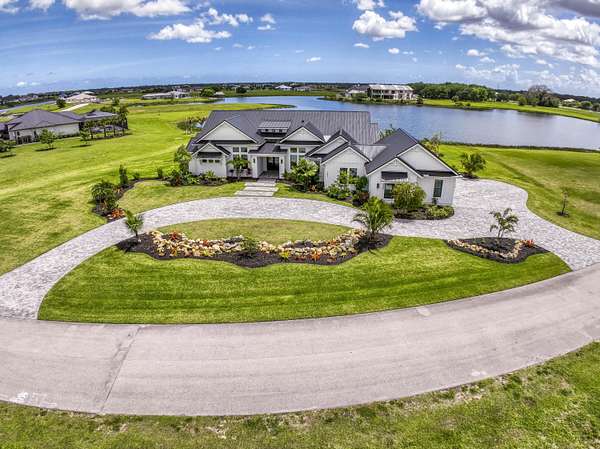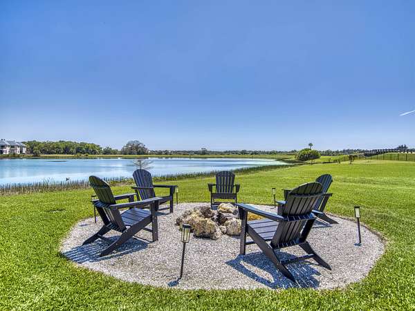 Experience elevated luxury living in this stunning 4-bedroom, 4.5-bath estate located in the exclusive and private community of Pentalago. This custom-built masterpiece by Arthur Rutenberg sits on an expansive 5-acre lot, offering breathtaking water views and unmatched tranquility. Inside, you'll find four spacious bedrooms, each featuring its own en-suite bathroom and walk-in closet, along with a convenient half bath for guests. Two versatile bonus rooms provide endless possibilities for a home office, media room, club room, or additional living space. The grand living area showcases a thoughtfully designed open-concept layout with soaring 20+ foot ceilings, accented by custom wood beams and elegant tongue-and-groove shiplap detailing. The gourmet kitchen is truly a chef's dream, featuring quartz countertops, solid-wood white shaker cabinetry, a large center island, custom kitchen hood, walk-in pantry and top-of-the-line Monogram appliances, including premium Fulgor Milano oven. Step outside to your private resort-style oasis. The expansive outdoor space includes a massive, heated saltwater pool overlooking serene wide water views, a custom putting green, beached hammock area, and a fire pit area, ideal for relaxing evenings under the stars. The oversized screened-in patio features pine wood shiplap ceilings and a fully equipped summer kitchen, making it perfect for year-round entertaining. Pentalago is a vibrant and active lakeside community. With five scenic lakes, residents can indulge in a variety of thrilling water activities, including slalom skiing, trick skiing, jump skiing, paddle boarding, and more. It's the perfect blend of outdoor adventure and serene natural beauty. Schedule your private showing today!