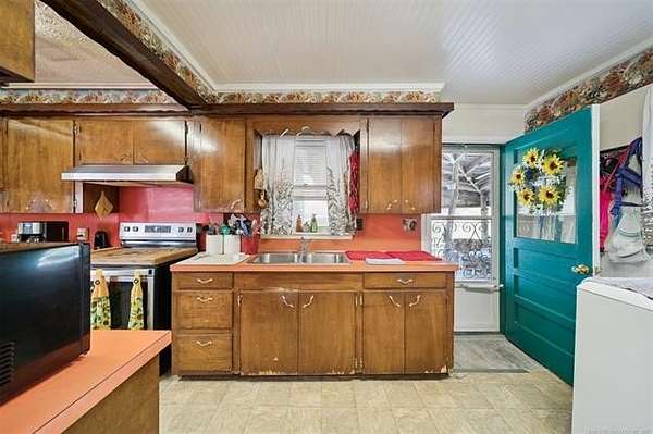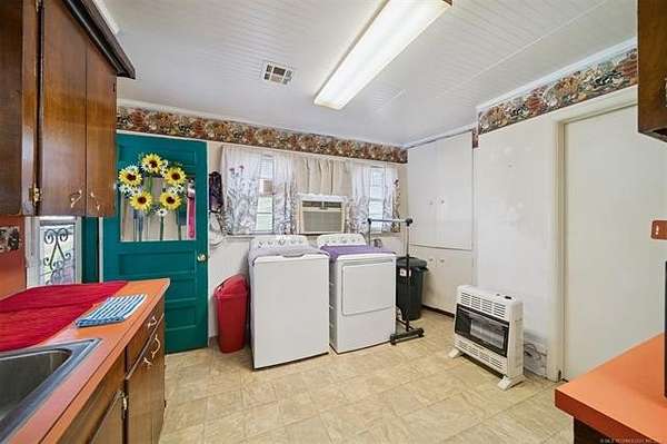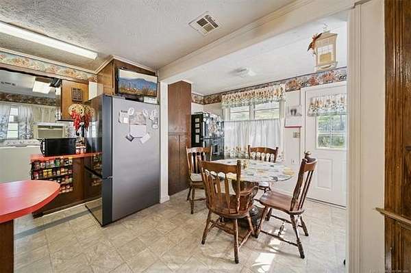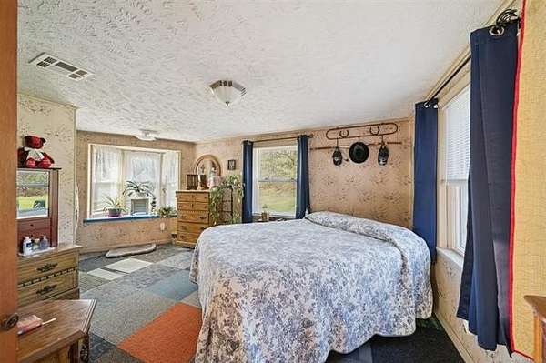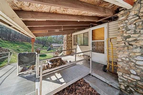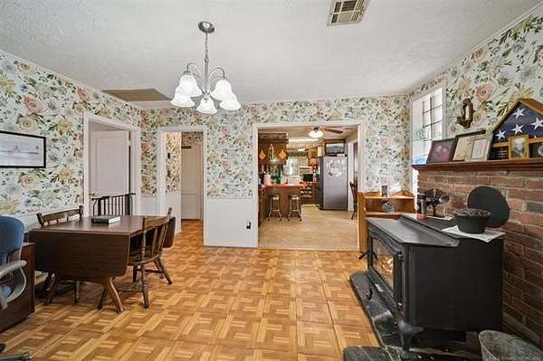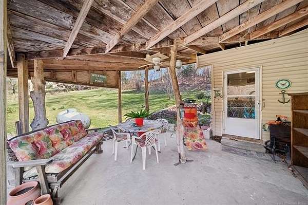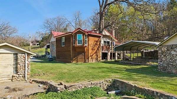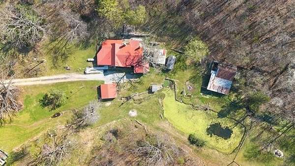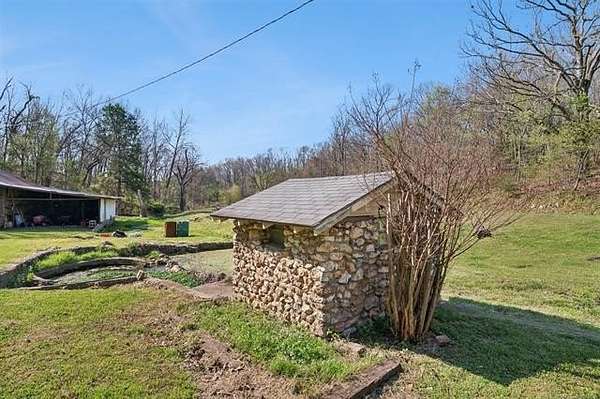 Take a look at this warm, character-filled farmhouse set on 3.4 peaceful acres, where a gentle running spring winds its way through the spring house into a quiet, reflective pond. The home itself blends rustic charm and timeless durability, with a beautiful rock exterior accented by rich cedar details and topped with a sturdy metal roof. Inside, the house offers three cozy bedrooms and one and a half baths, perfectly suited for comfortable country living. The heart of the home is an adorable, inviting kitchen-full of charm, with thoughtful touches that make it feel both functional and full of personality. Just beyond, a welcoming living space centers around a classic wood burning stove, creating the perfect spot for gathering on cool evenings. Step outside to a sweet front porch that seems made for slow mornings with coffee or winding down at sunset, taking in the peaceful surroundings. Nearby, a large barn adds both practicality and rustic appeal-ideal for storage, hobbies, or small-scale farming dreams. The land itself is just as special, dotted with a mature pear tree and open space to roam, garden, or simply enjoy the quiet beauty of nature. For peace of mind, there's also a large walk-in storm shelter with ample storage space, blending safety with convenience. Altogether, it's a place full of warmth and personality-where every detail, from the textures of stone and cedar to the gentle sound of flowing water, creates a home with true character and soul.