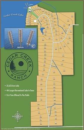 Est $2,032/moBring your own builder to this beautiful 1.15 acre lot (lot 56), walking distance to Cedar Creek Lake & Community Club House. This community requires a minimum 1,600 sq ft of HVAC Living Space. Cedar Creek Ranch is a gated, master planned community with a club house and a pool overlooking the Lake. This lot comes with a deeded boat slip (#38 - middle dock), and a boat launch for residents and their guest. Here you can enjoy the absolutely stunning terrain with open spaces and custom builds throughout. Plus walking access to the lake & boat dock make this even more simplistic for your new lake life!