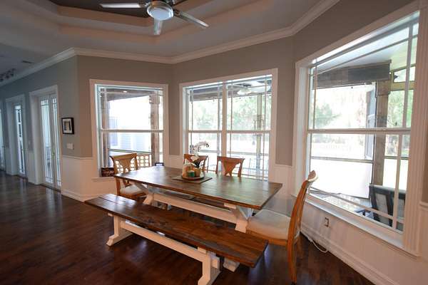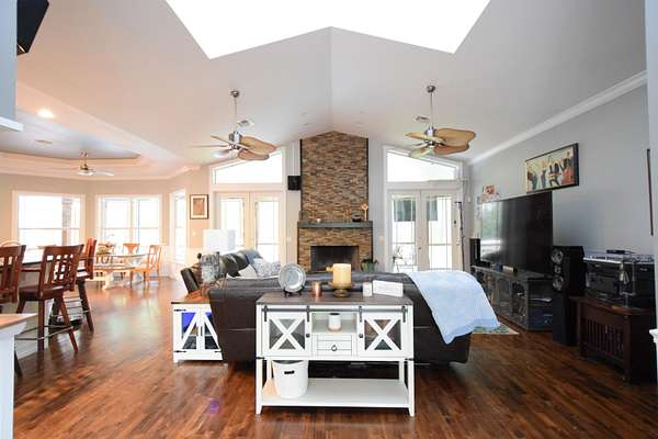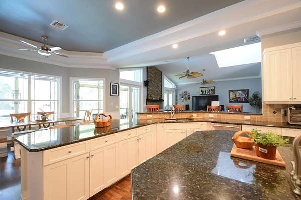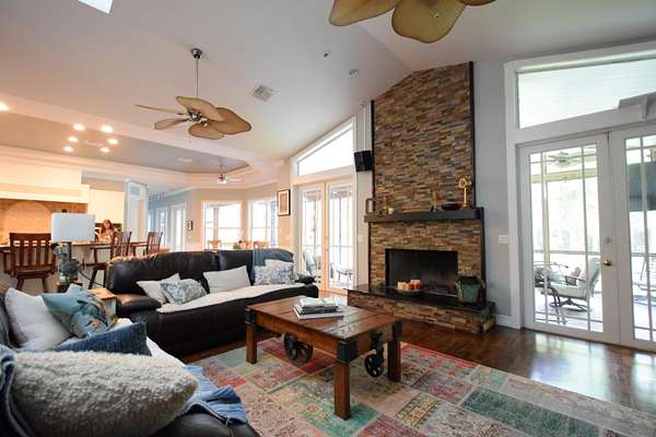Gorgeous, spacious home with five bedrooms plus dedicated office and bonus room. Detached three car garage, separate out-building for large boat and RV storage. Newly built pickleball court. Open layout is ideal for entertaining. Bring all the family, the kids, animals and toys! This home has room to spread out and live! Middle bay of garage is enclosed and air conditioned. Full sized Sub Zero Freezer and Full Sized Sub Zero Fridge in Kitchen. Two ovens, stove, microwave and wine cooler all new in 2026. Hardwood floors throughout. Wood burning fireplace. Original metal roof good condition, no leaks. Storm rated windows and doors.