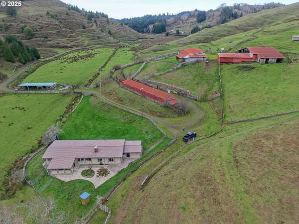 560 acres where sheep once ruled the hills-more than 500 of them, in fact-thanks to decades of terracing. The sheep have since passed the torch to cattle, who seem perfectly satisfied with their new kingdom.The ranch home sits dead-center on the property, ideal for anyone who enjoys privacy, quiet, or simply prefers not to see another human unless they're invited. Four bedrooms, one and a half baths, and a full lineup of supporting structures: machine shed, barn, loafing sheds, corrals, and more.Private, gated, and surrounded by timberland, this ranch offers a rare combination of seclusion, scale, and history-plus plenty of room to get lost and still technically be "at home."