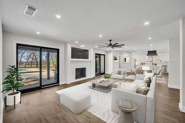 Inside, the fully remodeled interior is move-in ready. The home features 4 spacious bedrooms and two primary suites--one up, one down.