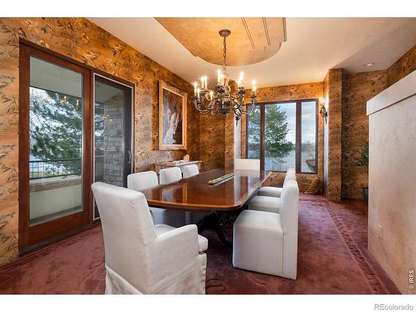 Discover a masterwork of light, water, and vast Colorado horizons. Spanning over 18 acres across 3-distinct parcels, this rare Boulder County sanctuary offers an immersive connection to the landscape, with views stretching from the snow-capped majesty of Longs Peak to the tranquil, glassy surface of Burch Lake. The estate is defined by its vitality and self-sufficiency, sustained by 1.36 shares of the Palmerton Ditch. This invaluable water resource meanders through the grounds, nourishing lush gardens, irrigated hay fields, and a productive orchard of pear, peach, and apple trees. Arrival is an experience in itself: a stately gated entrance opens to a winding, tree-lined drive that reveals meticulously manicured grounds and a series of idyllic ponds. The residence is a celebration of glass and stone. A custom metalwork tree adorns the entry, leading into a home bathed in natural light. A soaring glass atrium and towering windows blur the boundary between the elegant interior and the awe-inspiring mountain vistas beyond. With vaulted ceilings and double-sided stone fireplaces, the interior feels both grand and intimate. The outdoor amenities are distinguished by a pool, pool house, and outdoor kitchen, creating a private oasis designed for hosting against a backdrop of total serenity. Beyond the primary residence, the estate's versatility is unmatched. A second legal parcel offers the rare flexibility for an additional 5,500-square-foot luxury home, while the multifunctional barn provides a professional-grade office, kitchen, and equestrian stalls. For the hobbyist or steward of the land, a dedicated workroom comes complete with a mechanical pit for equipment care and projects. Tucked into a discreet corner of the county, the Rozena Estate offers a rare equilibrium of natural tranquillity and modern accessibility. This is an enduring legacy of peace and permanence, located just minutes from the vintage charm of Hygiene and the vibrant pulse of the Front Range.