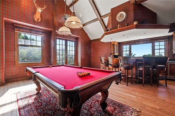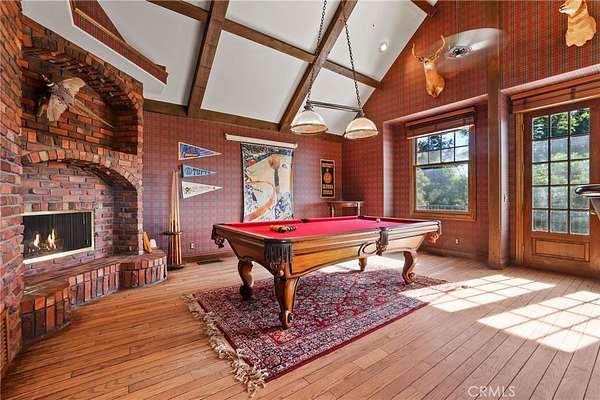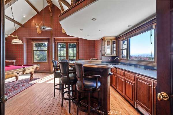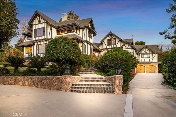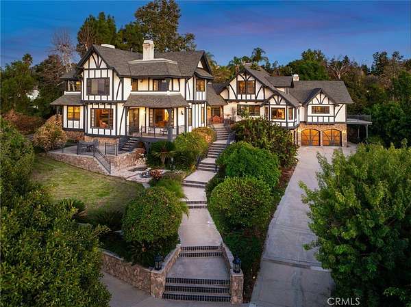 A one of a kind gated Tudor estate in the prestigious Hawarden Hills set amid tranquil grounds offering the perfect blend of sophistication, privacy and historic allure with contemporary potential. Your vision will complete the story. Crafted by renowned builder Tom LaCava as his personal residence, every inch of this home showcases remarkable craftsmanship and detail -- from hand-selected fine oak banisters and custom-built cabinetry to dramatic wood and gas fireplaces and artful alcoves designed for displaying sculptures and fine art. Perched on a scenic hilltop, the residence is thoughtfully oriented to capture sweeping 180? views of city lights, mountains, and sunsets through large picture windows in nearly every room. A grand two-story foyer introduces the home's elegant interiors, leading to a formal living and dining room with high ceilings, gorgeous oak hardwood floors, and private balconies. The chef's kitchen features a breakfast nook, butler's pantry, walk-in pantry, granite countertops, and a balcony ideal for al fresco dining. Designed for entertaining, the home offers a billiard room with bar and a family room with loft, both highlighted by vaulted beamed ceilings, fireplaces, and French doors. The estate is surrounded by walking paths, a sparkling pool and spa, cabana, and sun deck. Let every generation find its corner, there are 2 ADU's on the property, one is 2 Bed / 2 Baths 1,178 Sq Ft with its own 2-car garage and offers beautiful city light views. The other is a small studio suite pool house. A true legacy home with a timeless address.