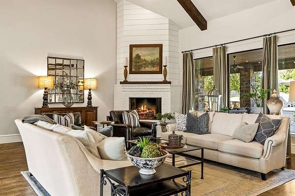 Exceptional single story custom home located on 1.8 acres in a prime location just minutes to Lake Grapevine, DFW Airport & all that Flower Mound has to offer. This thoughtfully designed layout effortlessly connects the entertainment areas into the fully equipped gourmet kitchen that features an abundance of counter & cabinet space, two sinks, two dishwashers, a pot filler, double ovens, a built in refrigerator-freezer, a top of the line gas cooktop & a generous walk in pantry. The large family room offers a corner fireplace, beamed ceiling & a wall of windows that overlooks the backyard oasis. The family room opens to the dining area & the kitchen creating a warm & inviting atmosphere. There are four spacious bedrooms each with an ensuite bathroom & large walk in closets. The primary bedroom has a large walk in closet with a storm shelter or panic room & has access to the utility room for convenience & ease. Other rooms include a study, a gameroom & a media room. Adjacent to the media room is a walk in wet bar with an abundance of cabinets, an ice maker & a built in beverage refrigerator. Have dogs? You will love the dog room with a shower & a door to an outside fenced dog run with turf. Retreat to the outdoors where you'll find a 43' outdoor living space complete with built in grill & unbelievable space to host a large gathering. You can enjoy the pool & spa year round as there is a heater for winter and a chiller for those hot summer days. 5 car oversized garage plus lots of extra parking. There are stairs to the expansive attic that offers amazing storage space. This is a rare opportunity to own a sprawling, single-level home in a premier location, offering space, style, and amenities that truly stand out.