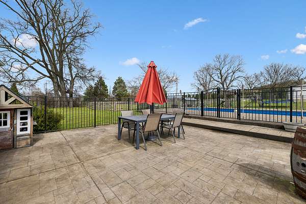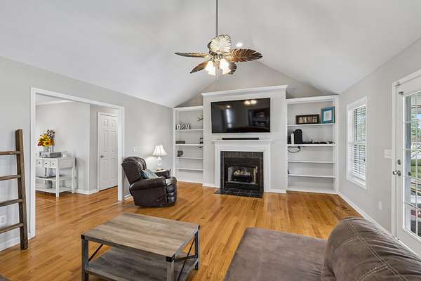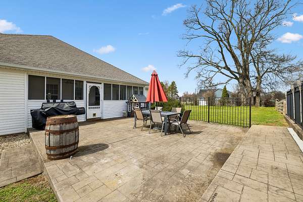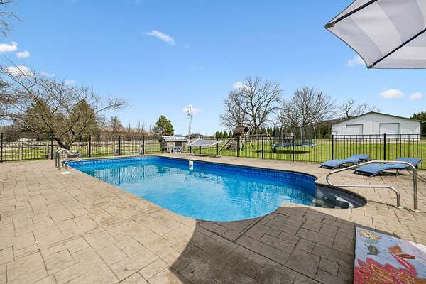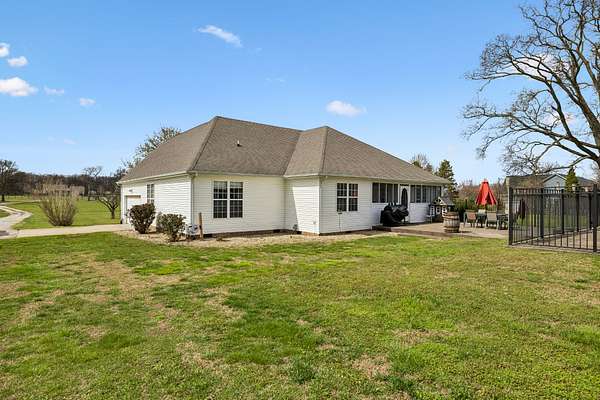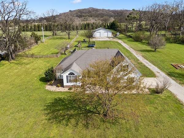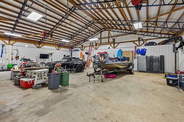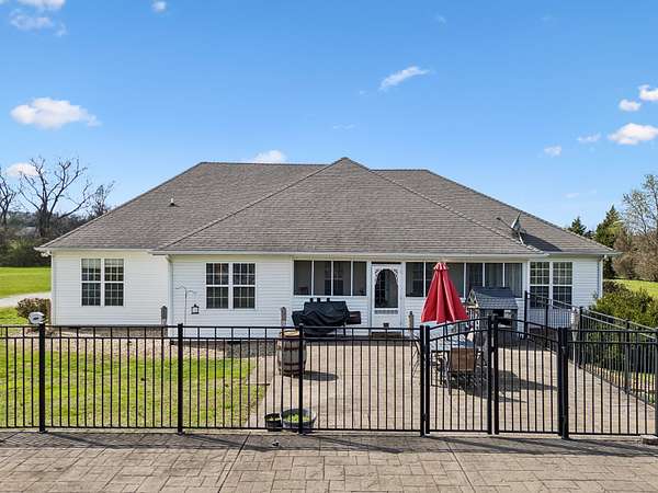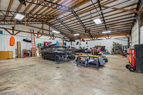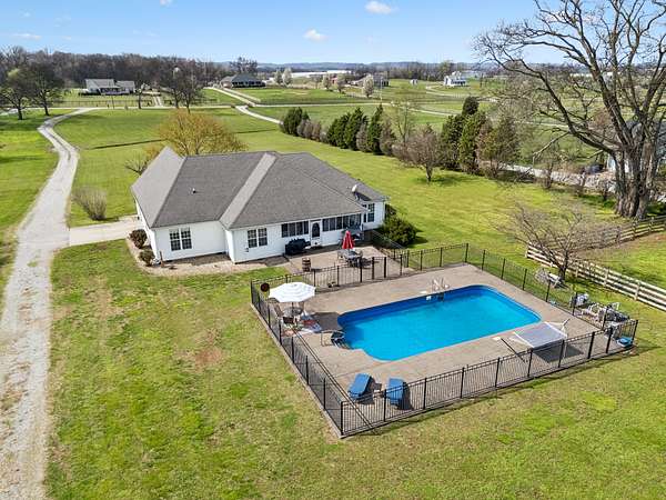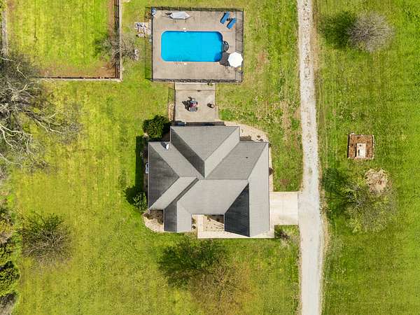HOME + SHOP + POOL. This home features a great room with built-in bookshelves and a fireplace, a dining area, and an eat-in kitchen. The layout includes 3 bedrooms, an office, and a bonus room. Two of the bedrooms are primary suites! Outside, there is a screened-in covered porch, a stamped-concrete patio, an in-ground pool surrounded by a fence for added security and protection, and a 2-car garage. Property also includes a 40x50 shop and an underground storm shelter installed by the sellers. (Water Heater 2024) (Pool: Pump-4/2026–Liner-2023) (Main Level HVAC: 2025)