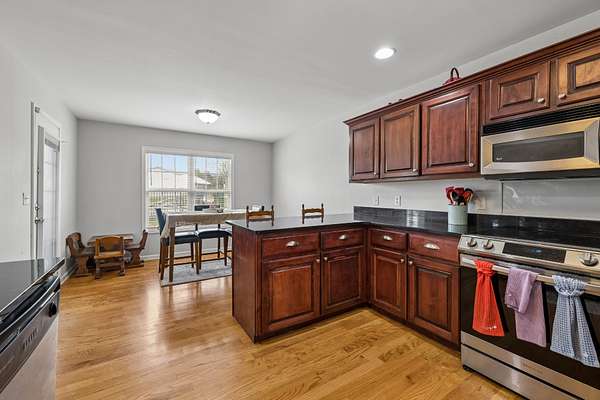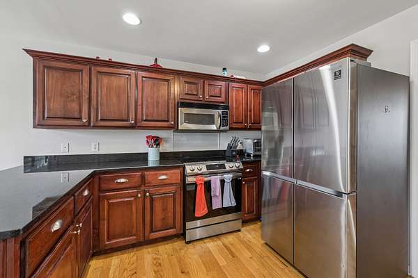 - Dishwasher, Dryer, Electric Oven, Electric Range, Microwave, Refrigerator, Stainless Steel Appliance(s), Washer