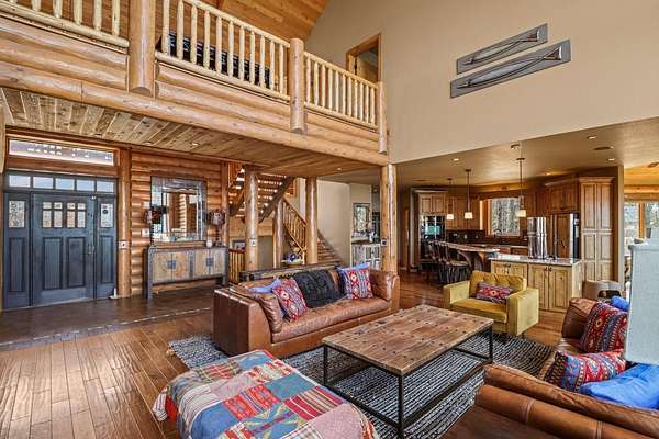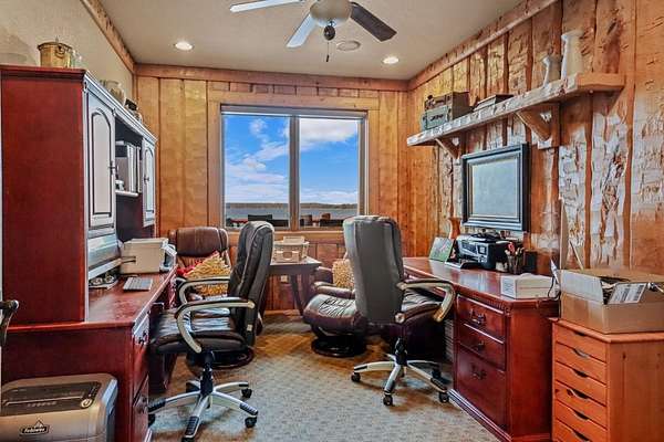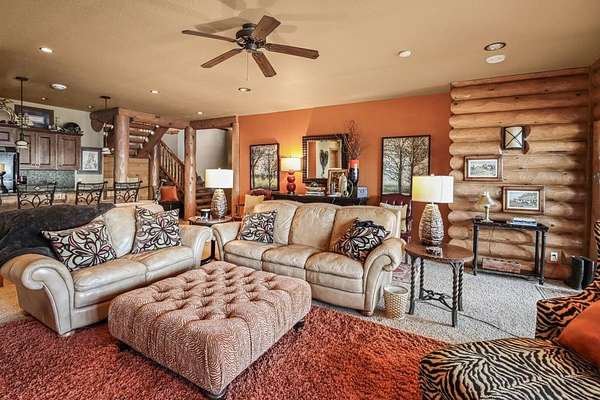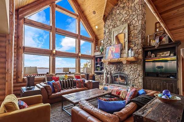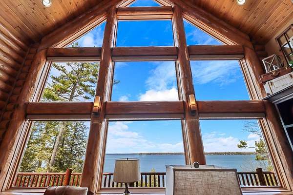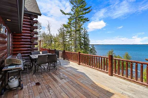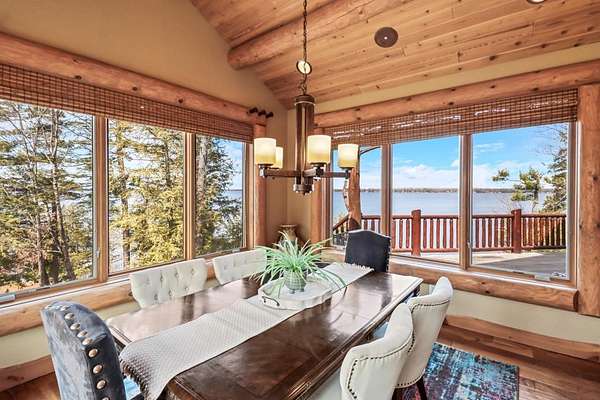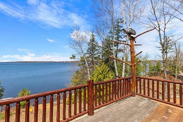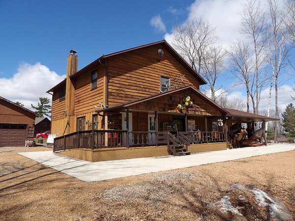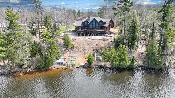 Magnificent 6,270 sq ft log-sided luxury home with breathtaking views overlooking renowned 3,600-acre Pelican Lake. This 6-bedroom, 3 full and 2 half bath home offers an open-concept design with a stunning great room featuring a massive stone wood-burning fireplace, formal dining room, and office/den. The gourmet kitchen includes granite countertops, wood cabinetry, hammered copper sinks, and a large pantry, with access to a lakeside deck. Wood, carpet, and tile flooring throughout, plus main floor and lower-level laundry. The walkout lower level boasts a spacious family room with a wet bar, stone gas fireplace, and patio showcasing spectacular westerly sunset views. Upper level offers 2 bedrooms, both with lake views. Many rooms capture beautiful lake vistas. The additional 2,680 sq ft building with a 2-car detached garage (currently used for a business) could make an ideal guest home conversion. Exceptional Northwoods lake living! Call today for your personal showing.