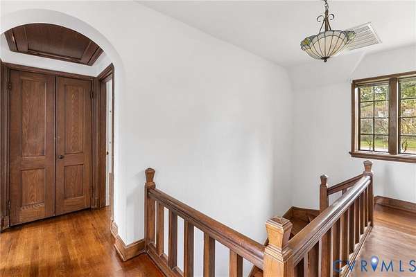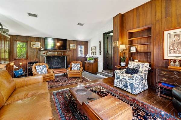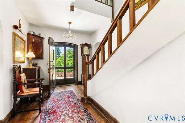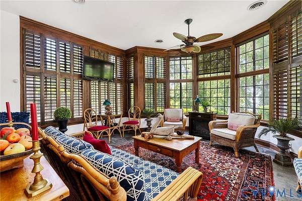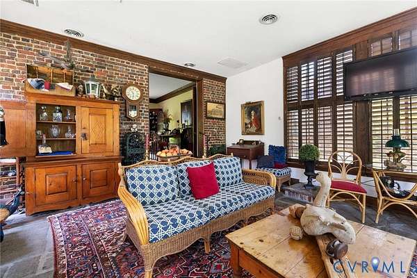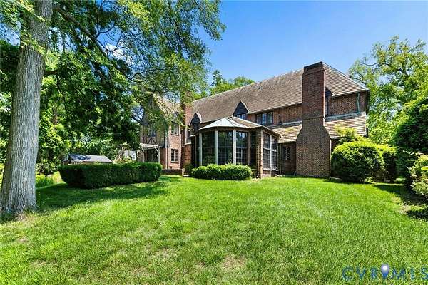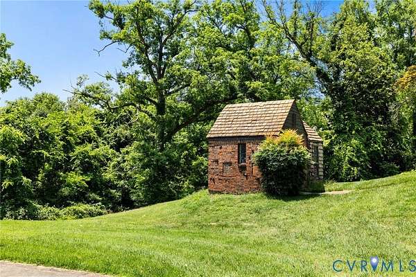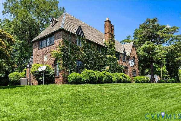 Majestically mounted high above the riverbank where the James and Appomattox join at historic City Point, this Tudor Revival built in 1929 could easily be mistaken for a 500-year-old-medieval manor house. A showplace of architectural distinction designed by noted architect Carl Lindner, the 5 bedroom, 3.5 bath house is constructed of irregularly shaped bricks in nuanced colors and fanciful patterns giving it an air of antiquity. Situated on nearly three acres, the house overlooks a rolling lawn, part of which, served as a wagon road to Petersburg during the Civil War. The rear of the property has 77 feet of waterfront with arresting views. The interior of this 4,075 SF house is as magical as the exterior with elaborate mouldings, arched doors and long, narrow windows. The outbuildings--a folly, boathouse and 2-story, 5 car-garage--are whimsical complements to the main house, echoing its Tudor vibe. The first floor has a living room, dining room, kitchen, pantry, river room, and family room. On the second floor are four bedrooms, including a primary suite, and a charming housekeeper's quarters with a fifth bedroom and third full bath. This sprawling landmark is only 20 minutes from downtown Richmond and 45 minutes from Williamsburg. Nearby are the Beacon Theatre, a marina, and the National Battlefield Park at City Point.