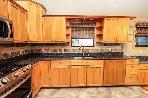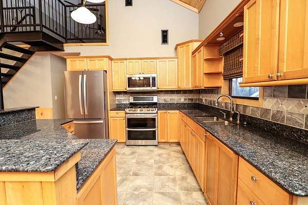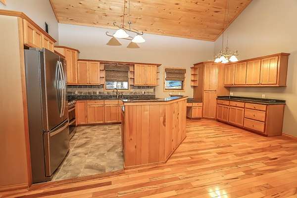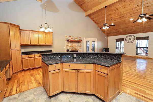 - Blinds, Breakfast Bar, Built-In Features, Ceiling Fan(s), Kitchen Island, Open Floorplan, Primary-Lower Level, Smoke Detectors, Vaulted Ceiling(s)