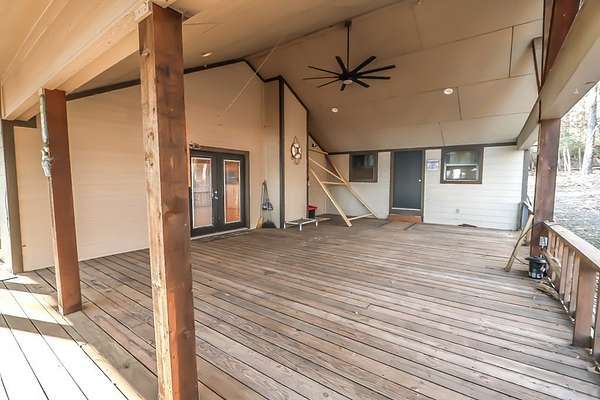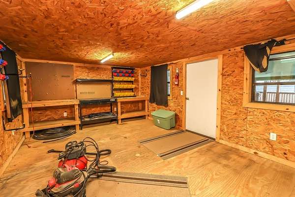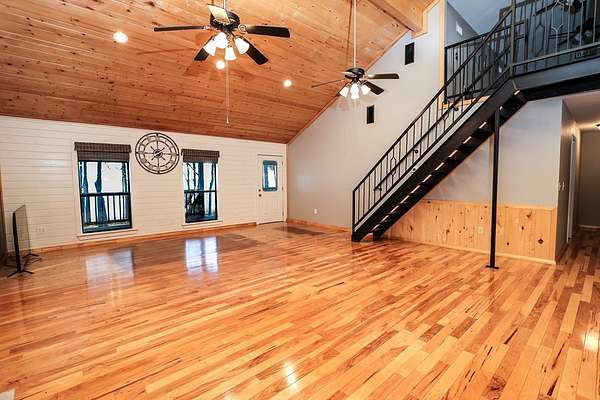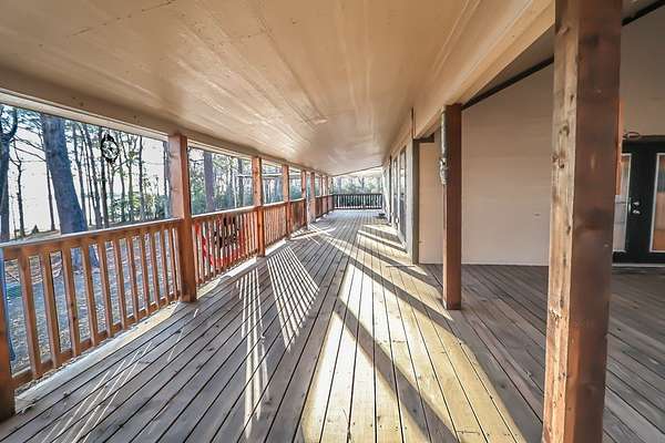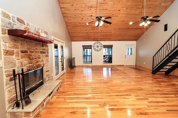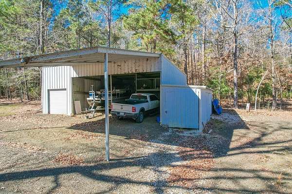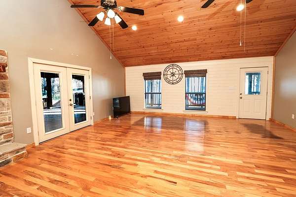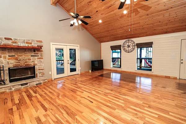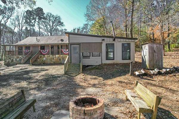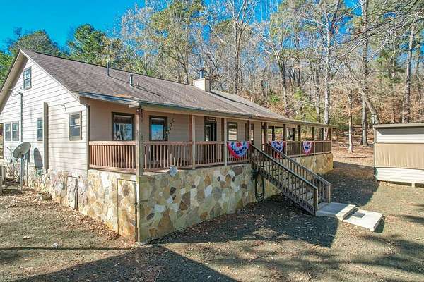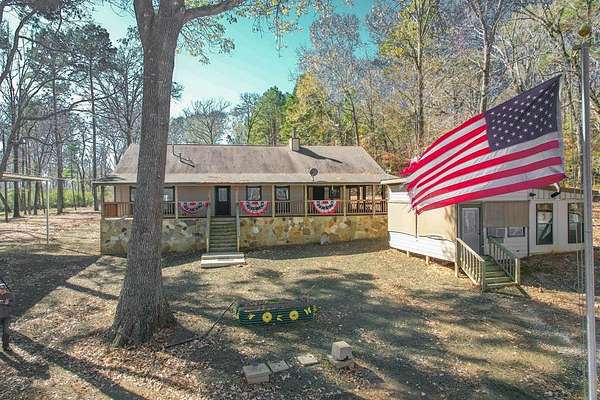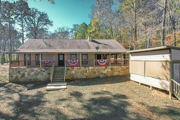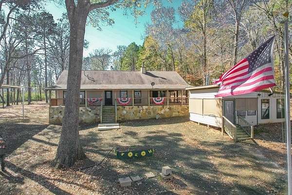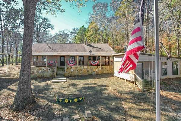Discover peaceful main lake waterfront living in this 3 bed, 2 bath home on 2.6 acres set in a quiet, private, and serene neighborhood where you cannot see the one other home. With approximately 225' of usable shoreline, a sandy beach, and thoughtfully designed outdoor spaces, this property offers the perfect blend of comfort, privacy, and recreation. Enjoy the outdoors year round with covered porches, an inviting firepit, and a charming outside cabana ideal for entertaining or relaxing by the water. The home offers boat storage, RV storage, and a spacious workshop or additional storage. Inside, the home features a tastefully upgraded kitchen with new appliances, granite countertops, and a tile backsplash. Hardwood floors flow throughout the main living areas. The primary suite offers a walk in tile shower and a separate dressing room. Additionally the home includes a full home Kohler generator for peace of mind. This is a rare opportunity to own a truly private waterfront property.