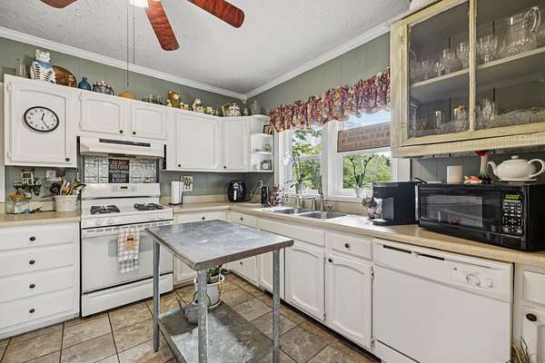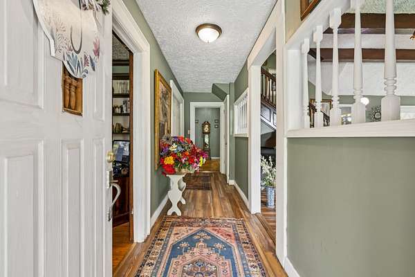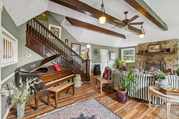 Charming 1932 traditional style home offering 3 bedrooms and 3 full baths, set on a serene 3.09-acre property, full of character and modern comforts. Beautiful exterior with stone front door entrance and stone chimneys, located on corner lot w/level to rolling terrain. Inside you’ll find timeless craftsmanship throughout, featuring a welcoming living room with a striking stone fireplace and exposed wood beams, and an elegant office featuring a custom oak mantle and rich carved paneling. The spacious primary suite on the main level includes a full bath, while the sunroom and walk-in utility room add comfort and convenience. Upstairs, two generous bedrooms share an adjoining sitting area, perfect for guests. An antique staircase serves as the home’s centerpiece, blending history with style. Outside, enjoy plenty of space to live, work, and play — including a 25' x 64' metal building with a one-car garage on the lower level, an additional 29' x 18' storage addition, an older barn, storage building, and a small pond. A two-car attached carport completes this versatile property. Located within 15 minutes of Dickson, 35 minutes to Nashville and 25 minutes to Clarksville. This property combines old-world charm with practical rural living — the perfect blend of past and present.