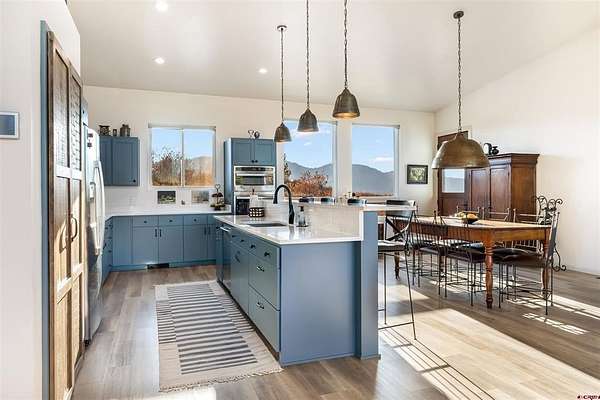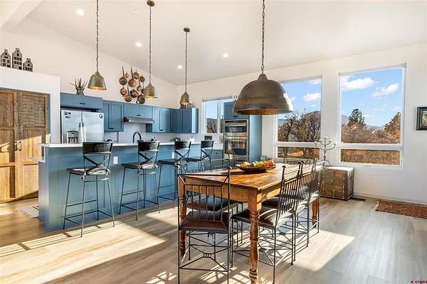 Aurora Peters, Sherpa Real Estate, C: 970-903-0329, aurora@sherparealestate.com, www.crenmls.com: Thoughtfully designed and impeccably crafted, this home reflects the owners’ local expertise and vision for a true “forever residence.” Every detail showcases intuitive design, lasting comfort, and precision craftsmanship.Placed prominently on a ridge with 360° views, the property overlooks Navajo Peak and a protected valley. Southern exposure brings year-round sunlight and natural warmth. Outdoors, a fire pit and beautifully landscaped grounds—featuring purple Russian sage and resilient native grasses—are tailored to thrive in the unique microclimate.The great room anchors the home with soaring 16-foot ceilings and a wall of Sierra Pacific windows framing the mountain panorama. Custom Sun Valley Bronze hardware elevate the aesthetic, while central heating and cooling pair seamlessly with the sculptural, high-efficiency Bari Plus by Hearthstone woodstove.Modern systems include a Navien on-demand water heater and a pre-listing professional inspection. Practical one-level living, a mudroom, and an attached two-car garage further enhance everyday ease.Styled in a clean mountain-modern aesthetic, the home features a shed roof, Diamond Coat Smart Siding, Envision composite decks, an open-concept layout, split-bedroom design, and refined finishes. The chef’s kitchen and dining area are illuminated by bespoke artisan lighting.A separate heated 480 sq. ft. studio offers flexible use—perfect for a gym, art space, workshop, or quiet retreat. Outdoor living areas incorporate rustic panels and pillars for a warm, organic touch.Set on 3 acres within Crowley Ranch Reserve—home to 1,300 acres of private open space, exclusive hot springs, and miles of trails—this residence embodies timeless design, enduring comfort, and an effortless connection to its mountain setting.