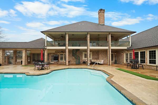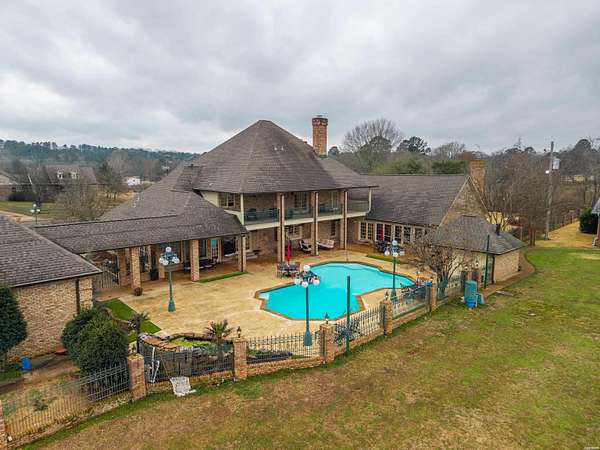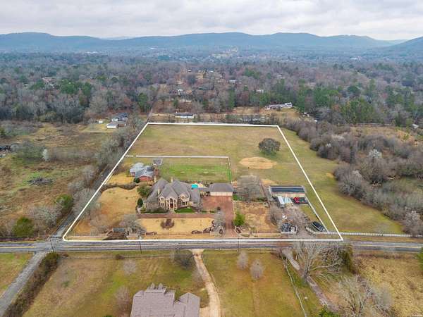 Experience luxury, privacy, and endless possibilities in this extraordinary 7,628 sq. ft. estate nestled on 7.1 acres of level land in beautiful Hot Springs. Designed to impress and built to accommodate both grand entertaining and everyday comfort, this one-of-a-kind property offers space, style, and versatility rarely found in one setting. The main residence features four estate-sized bedrooms and 5.5 bathrooms, providing generous accommodations for family and guests alike. Step inside to be greeted by soaring 25-foot ceilings and dramatic walls of windows that flood the home with natural light while showcasing the surrounding landscape. Expansive living areas create a seamless flow, perfect for hosting gatherings or enjoying quiet evenings at home. Each bedroom offers ample space and privacy, complemented by well-appointed bathrooms that blend elegance and functionality. Outdoors, a beautifully landscaped swimming pool creates a private resort-style retreat, ideal for relaxing or entertaining under the Arkansas sky. The manicured grounds provide both open space and scenic charm, making the property equally suited for leisure or future development. Car enthusiasts and hobbyists will appreciate the four-car garage, complete with a small upstairs apartment--perfect for guests, extended family, or potential rental income. In addition, a 30x70 shop equipped with solar panels helps offset electricity costs, combining practicality with energy efficiency and providing abundant room for equipment, projects, or storage. A detached guest house adds even more flexibility, offering comfortable accommodations for visitors or multi-generational living. As an added bonus, the property includes a separate 2,044 sq. ft. home next door featuring three bedrooms and two bathrooms--ideal as a rental property, caretaker's residence, or additional family quarters. The expansive 7.1 acres of level land open the door to countless opportunities. Whether you envision additional residential homes, a barn with horses, recreational space, or simply enjoying the privacy and room to roam, this property delivers unmatched potential. Located in sought-after Hot Springs, this rare estate combines luxury living, income potential, energy efficiency, and development opportunity--all in one remarkable package.