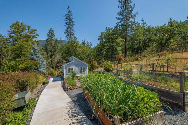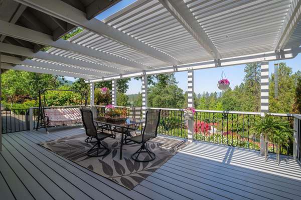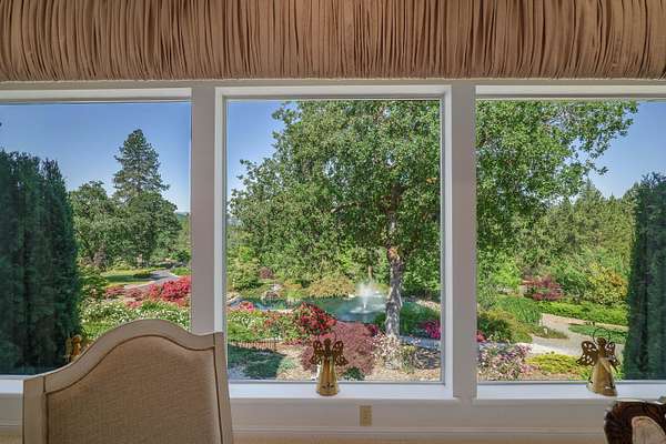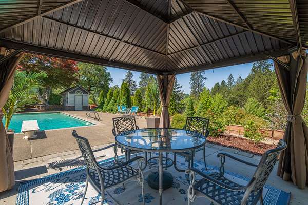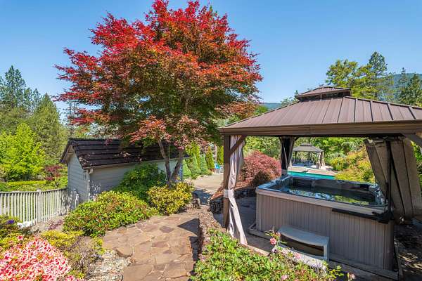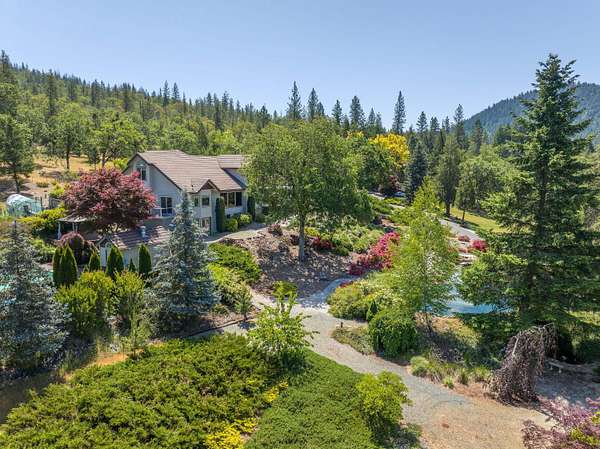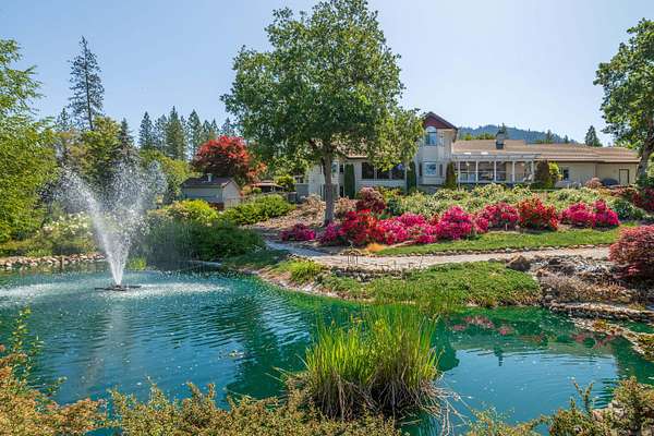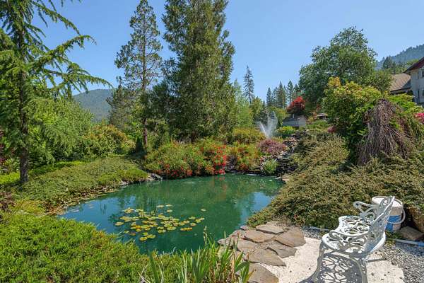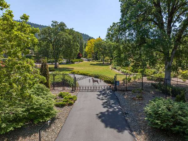 Experience luxury Southern Oregon living at this private, gated estate minutes from downtown Grants Pass. Manicured gardens, rose-lined paths, a koi pond, and a resort-style pool with a rock waterfall -- recently upgraded with a new pump and water-feature work. Vaulted ceilings, chef's kitchen with granite and double ovens, primary suite with new soaking tub and patio access. Three-car garage fully refreshed with coated flooring and utility sink. Detached studio for art, retreat, or office. Freshly painted walkout basement with private entrance, kitchenette, and bath -- ideal for multigenerational living. Dual Lennox HVAC, water softener, central vacuum, equestrian zoning. Located in Josephine County's sought-after Country Hills Estates with panoramic mountain views, this gated acreage compound offers privacy, space, and Rogue Valley lifestyle rarely found this close to town.