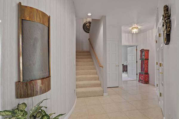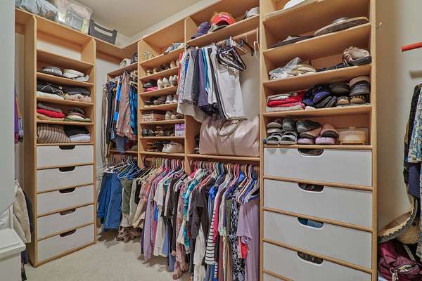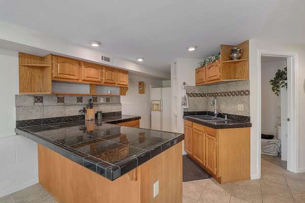- Ceiling Fan(s), Central Vacuum, Double Vanity, Granite Counters, Kitchen Island, Linen Closet, Primary Downstairs, Soaking Tub, Tile Shower, Vaulted Ceiling(s), Walk-In Closet(s), Wired For Sound