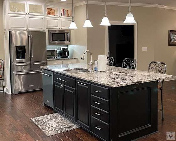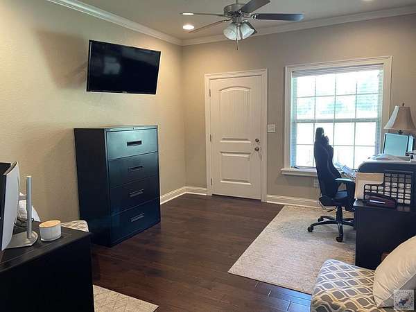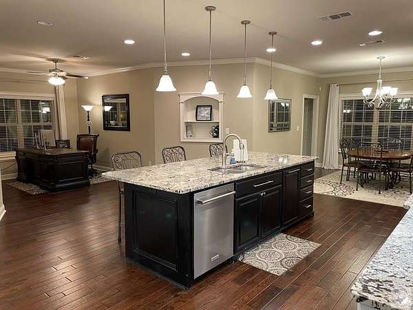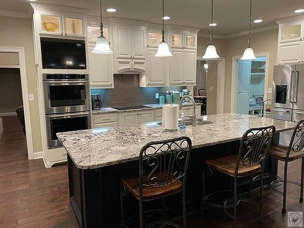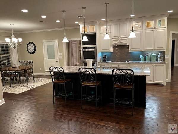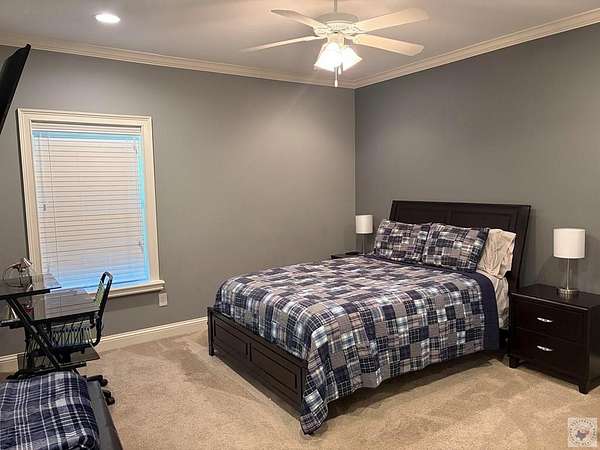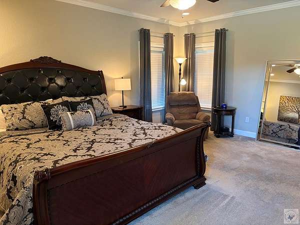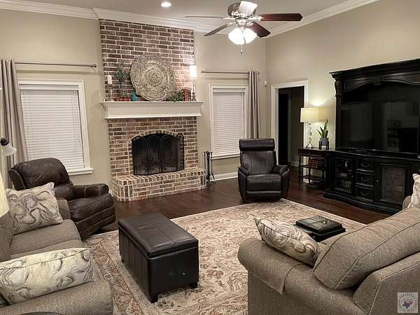 Est $4,661/moIntentionally designed 4 Bedroom, 3 bath home with tons of extras! Planned with comfortable living in mind. Floorplan is a split bedroom arrangement with larger sized rooms and accented with ceiling trim throughout. Living area features a floor to roof brick fireplace with adjacent formal dining. Kitchen highlights a huge island with bar space, sitting area and large breakfast area. Enjoy 3 covered patios attached to the home, a 30x40 shop with another covered patio, double garage doors and an RV hook-up. Property includes 6.426 acres, outbuildings, a spring, a well and fruit trees.