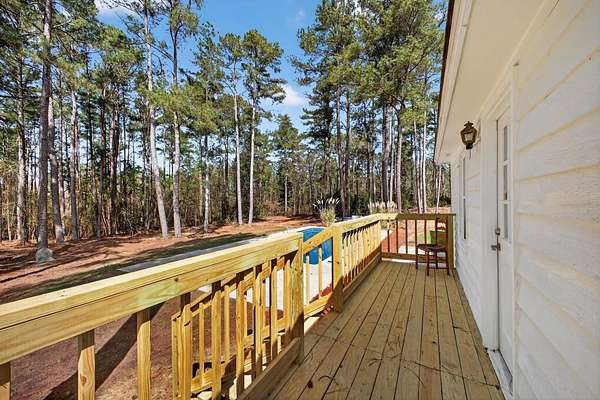 Set on a serene and private 24.16 acres just minutes from Downtown Aiken and I-20, this beautifully renovated 3 bedroom, 3.5 bathroom home offers the perfect blend of peaceful country living and modern comfort. A welcoming rocking chair front porch provides the ideal spot to relax and take in the stunning views of the surrounding property. Inside, a bright entry opens into spacious living area filled with natural light, highlighted by a striking stone fireplace with wood stove insert that serves as a warm and inviting focal point. Home features multiple spaces for living areas, all bright and generously sized, including a flex room or office space downstairs. The thoughtfully updated kitchen features quartz countertops, a sunny breakfast nook overlooking the backyard, and a bright dining area ideal for everyday living and entertaining. The spacious primary suite offers a comfortable sitting area and a well-appointed en suite with dual sink vanity, claw foot soaking tub, and large tile shower. Additional bedrooms are generously sized and each offer convenient access to full bathrooms. Outdoor living is just as impressive with a relaxing in-ground pool complete with liner and patio space perfect for entertaining or unwinding. The expansive acreage offers endless possibilities including hunting opportunities, access to a peaceful creek at the rear of the property, and 9 acres of pasture. A detached one-car garage/workshop with power provides excellent space for hobbies, storage, or equipment. Prime location just 5 minutes from New Bridge Polo Club and within the Aiken Equestrian Corridor. With a brand new roof and extensive updates throughout, this rare property combines privacy, functionality, and convenience in one exceptional setting.