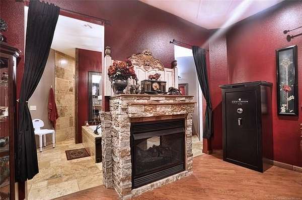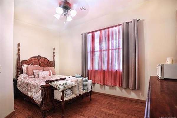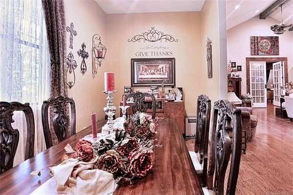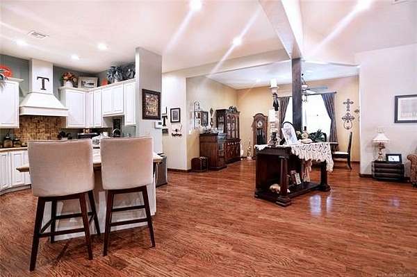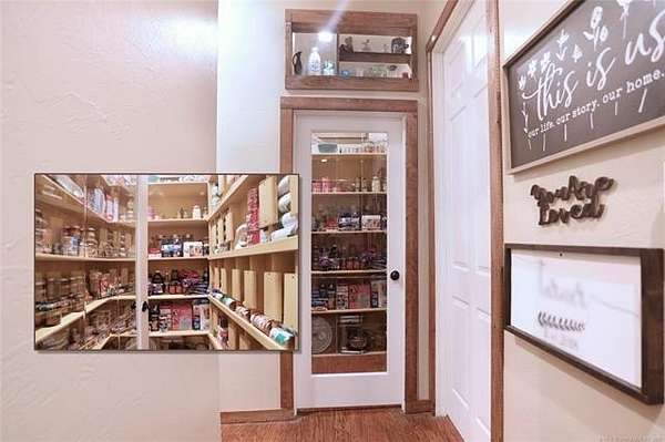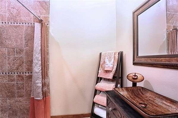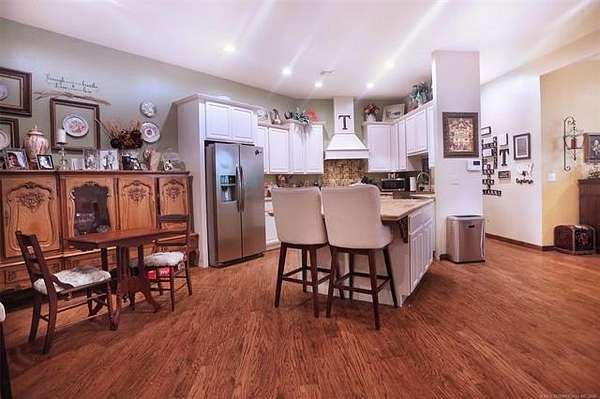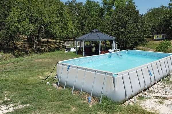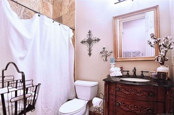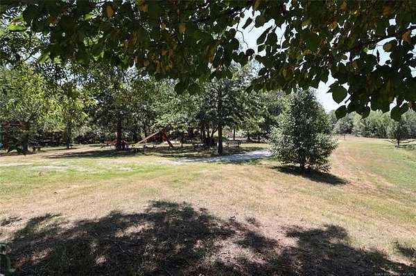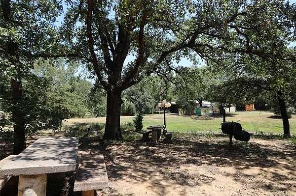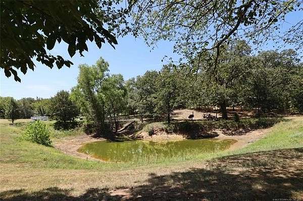 11.58 acres in rural Lone Grove school district. This brick/stone 3 BR 3 BA home with 3 living areas was built with beauty, quality, and comfort in mind. The front entry door is hand built with 4" oak. Two triple ceiling fans and custom-made beams adorn the ceiling in the main living area's vaulted area. The kitchen island between the living and kitchen areas has cabinets and a seating area. SS appliances include a farmhouse sink, a dishwasher, a refrigerator, and a gas stove. The spacious formal dining area looks out over the front yard and a walk-in pantry is located nearby in the hallway. The primary bedroom has an additional sitting area and is accessed via double French doors. A double-sided fireplace is shared by the bedroom and the bathroom. The 2-person jetted tub is located near the fireplace for relaxing ambiance. The convenient walk-through shower is spacious enough for 2 rain showerheads. The closet with natural lighting has a dressing area at one end plus seating area at the other. The second bedroom has a private bathroom. The third bedroom is conveniently located near the hall bathroom. The large under-staircase closet is accessed through the spacious nearby utility room. The second-floor second living area is accessed through the stairway in this area. The third living area is located through the double French doors from the main living area. Some extra details about this place: Both second and third living areas could easily be made into 4th and 5th large bedrooms with the addition of closets. There are 8' doors throughout the home and custom pine trim. Travertine showers. Travertine kitchen countertops. Hardwood flooring downstairs Carpeted upstairs. Tri-zoned HVAC. The walls have spray foam insulation. The covered front west porch allows a view of the beautiful Oklahoma sunsets. The land is accessed via a road or down the sprawling stairway. A 1BR/1BA cabin is located near the pond and picnic area.