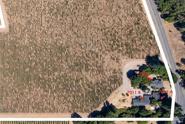 Discover the epitome of country living on 29+/- acres nestled in the esteemed Dry Creek Valley. This unique property features two turn of the century farmhouse homes, each offering its own charm and functionality, plus a 900 +/- sq ft unit built in 1998, making it an exceptional opportunity for multi-generational living, investors or those seeking to build their own wine country estate. Built in 1875,a roughly 1300 sq ft +/- Craftsman style home features 3 beds and 2 baths, enclosed porch and outdoor entertaining area. The other home (7021) has been thoughtfully updated to blend historic charm with modern amenities. 2 bedrooms plus an office, and 1 bath. The spacious 1600 sq ft+/- living area is perfect for relaxation and entertaining. The 2 bed, 2 bath unit located behind the main house, features its own garage, offering privacy and practicality for tenants or guests. Includes a 3-bay garage/carport, providing ample storage for farm equipment and convenience. The property boasts 12 acres Cabernet Sauvignon and plenty of room for a garden. Enjoy Dry Creek frontage and a large outdoor entertaining area, perfect for summer gatherings and soaking up the scenic beauty. Don't miss the chance to own a piece of Dry Creek Valley's rich history.
