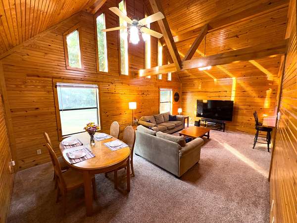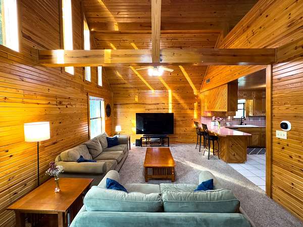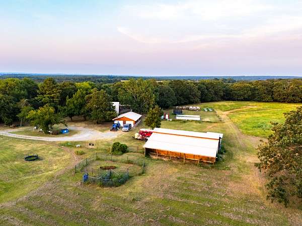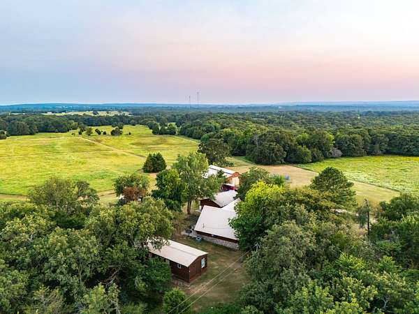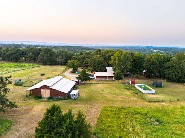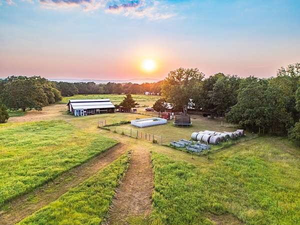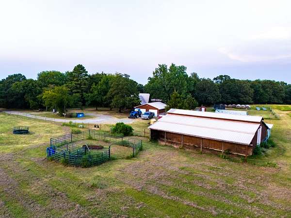 Nestled in Pittsburg County, this 15.69+/-acre property offers a peaceful country lifestyle with plenty of space, comfort, and functionality! The main home is a rustic 1,776+/-sq ft, 3-bedroom, 1.5-bath residence featuring charming wood interior accents. Inside, you'll find a spacious downstairs layout with a full bathroom, one bedroom, and a relaxing hot tub room, while the upstairs includes two additional bedrooms, a half bath, and an open loft area. Just a short walk from the main house, a 776+/-sq ft guest home provides extra accommodations with 2 bedrooms, 1.5 baths, a full kitchen, and an open living area. Both homes include laundry rooms for added convenience. The main home is finished with tile and carpet flooring, while the guest house boasts beautiful hardwood floors throughout. Additional improvements include a 786+/-sq ft detached two-car garage with plenty of space for equipment, tools, and storage, as well as a large 2,500+/-sq ft barn with 1,000+/-sq ft covered run-ins on each side and a spacious 1,500+/-sq ft interior ideal for equipment. The land is fenced and includes a blend of open pasture and a lightly wooded area, making it suitable for a few cattle or horses. There's ample yard space for outdoor activities, family recreation, or simply enjoying the peaceful setting. A long driveway leads to the homesite, providing a private and welcoming entrance. The property also supports a variety of native wildlife, including deer, turkey, and small game, offering added enjoyment for nature lovers. Located just 28+/-minutes from McAlester, 33+/-minutes from Eufaula and Eufaula Lake, and 1 hour and 10+/-minutes from Tulsa, this property is a rare blend of rural charm, livability, and open space--perfect for those seeking a comfortable country retreat with room to grow and enjoy the outdoors. All showings are by appointment only. If you would like more information or would like to schedule a private viewing please contact Ty Hunter at (918) 329-0843 .