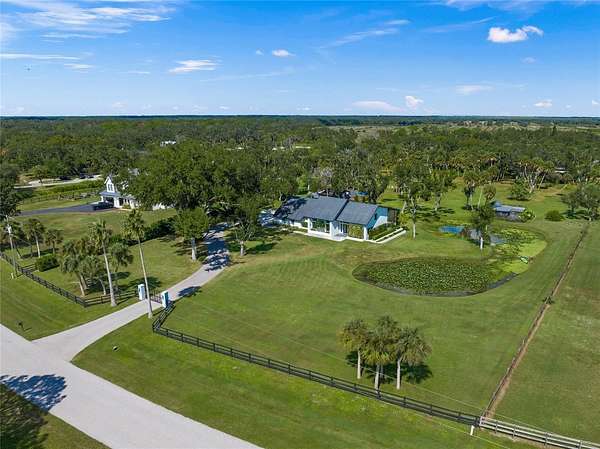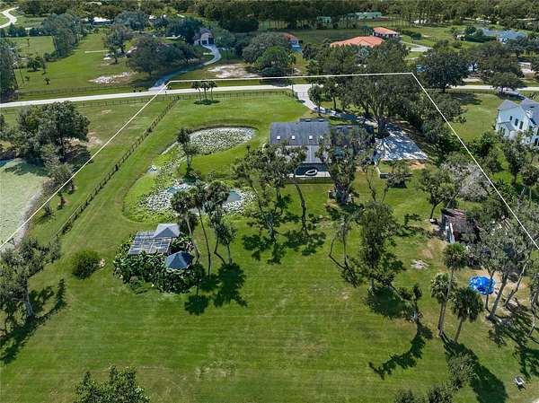Under contract-accepting backup offers. This is the one * 'A' RATED SCHOOL DISTRICT * A MUST SEE FAMILY ESTATE HOME IN MUCH SOUGHT AFTER SADDLE CREEK * PERFECTLY POSITIONED on 5 ACRES of PEACEFUL, PRIVATE LIVING in this GATED, EQUESTRIAN NEIGHBORHOOD with 25 MILES OF RIDING TRAILS * You will be truly impressed from the moment you enter the electric gate and drive down the ASPHALT & CONCRETE DRIVEWAY surrounded by LUSH GREEN PASTURES & MATURE OAK TREES * From the moment you enter your ELECTRIC PRIVATE GATE you will appreciate the IMPECCABLE GROUNDS, SERENITY & PRIVACY * TUCKED ON THE QUIET BACKSIDE OF SADDLE CREEK * Open the front doors to VOLUME CEILINGS SHOWCASING AN ABUNDANCE OF NATURAL LIGHT * Some impact glass windows * This home has been LOVINGLY RENOVATED & THOUGHTFULLY REIMAGINED * NEW ROOF IN 2019 * In addition to many Walk-in Closets, this home has AMPLE STORAGE, BOTH DOWNSTAIRS & UP * COASTAL CONTEMPORARY-MEETS-FARM CHIC * Open Floorplan with a NEWER Chef's Gourmet Kitchen featuring NEWER Cabinets, QUARTZ Countertops, GAS COOK-TOP, and a Central Kitchen Island with Wine Fridge * THE CURRENT HOMEOWNER PAINSTAKINGLY OVERSAW EVERY STEP OF THE RENOVATIONS from the Kitchen to the Bathrooms to NEWER Flooring * NEWER Paint in & out * NEWER Lighting * The SPACIOUS Primary Suite is a TRUE RETREAT with a LARGE Walk-in Closet with Custom Built-ins and a LARGE Spa-style Bath with Custom Shower and Dual Vanities * PRIMARY SUITE IS DOWNSTAIRS * 4 ADDITIONAL BEDROOMS ARE UPSTAIRS with 3 OF THOSE BEDROOMS AS EN-SUITES * This home is a TOTAL OF 5 LARGE BEDROOMS & 5 BATHS * PLUS a Private Den/Office * The Great Room features a 2 Story Volume Ceiling with a BEAUTIFUL MODERN, GAS FIREPLACE * This is the PERFECT HOME FOR MULTI-GENERATIONAL LIVING or Extended Stay Family or Guests * All of this wraps your OUTDOOR OASIS with a NEWER PANORAMIC POOL CAGE * Pool & Spa with Paver Deck * Your Covered Lanai is 33 feet long * This is the perfect home for entertaining or simply relaxing in your slice of paradise * The PANORAMIC VIEWS OF THE GRAND OAKS & POND ARE A MUST SEE!* Enjoy the Detached Workshop * Raise the family chickens in the existing Aviary *