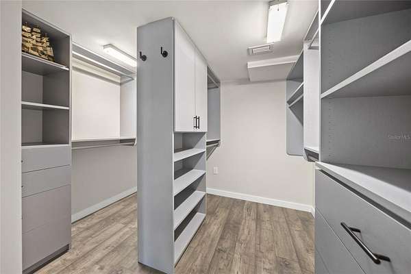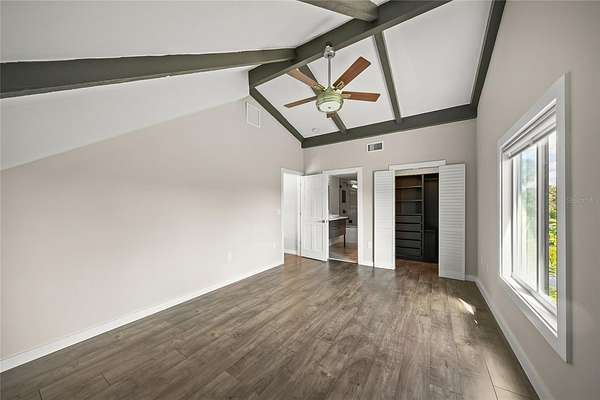- Built-In Features, Ceiling Fans(s), Eat-In Kitchen, High Ceilings, Open Floorplan, Primary Bedroom Main Floor, Solid Surface Counters, Solid Wood Cabinets, Split Bedroom, Stone Counters, Walk-In Closet(s), Window Treatments
