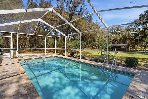 Experience the ultimate Florida lifestyle in this sprawling 13.87 acre estate. The grounds are fenced and cross-fenced, featuring sections of electric fencing and a horse barn with two stalls. Whether you're looking to start a hobby farm or find a forever home for your horses this is a must see. This property offers a rare combination of private country living while still being close to local ammenties. This home is close to the Withlacoochee State Forest for endless trail riding and hiking. Easy access to the Suncoast Parkway (approximately 1.5 miles away) for a quick commute to Tampa. A short drive to Crystal River and Homosassa Springs for kayaking and manatee viewing. Step outside to your private screened in pool, the perfect oasis for cooling off after a day at the barn or hosting summer gatherings. The home features a 2 car garage, an attached carport, and 2 sheds providing ample space for tack storage, or a workshop. The roof was redone in 2018 and the water heater was replaced in 2024 Although the home was just repainted inside and out the residence itself is a canvas awaiting its next chapter. It is a home that whispers of its former glory, now searching for a visionary to provide a little TLC and bring it back to its full potential. This home is to be visited by access on Tommy Point only and by APPOINTMENT ONLY. Call today for you private showing!