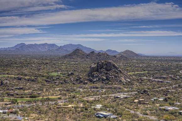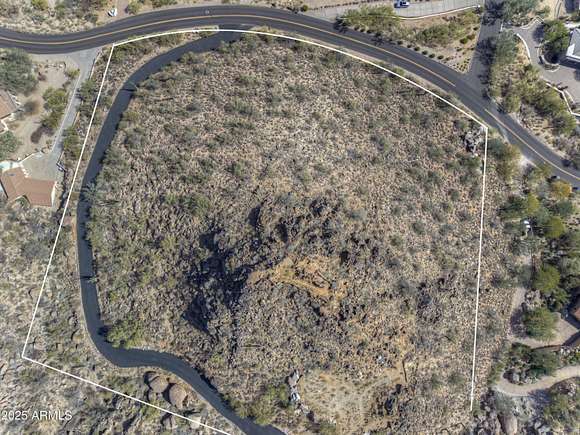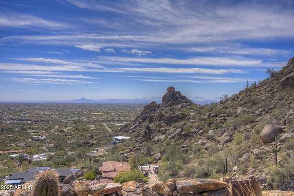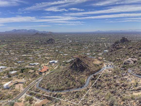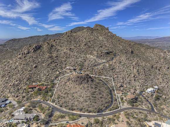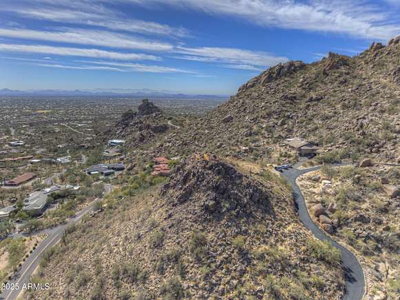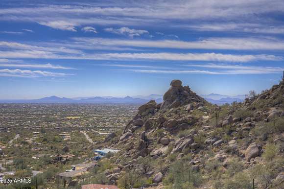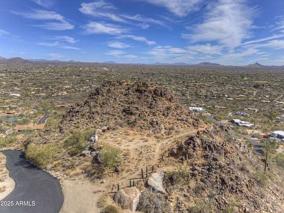An exceptional 4.72-acre double lot, free from HOA restrictions, presents a rare opportunity to create your dream home high on the sought-after East slope of Black Mountain renowned for its breathtaking boulder formations and architecturally distinctive homes. A newly paved driveway provides access to just 4 estate-sized lots adjacent to Preserve, ensuring privacy and exclusivity. Seamless access to the cul-de-sac w/ available Water, Sewer, Electric & Gas. The prime building site offers unparalleled panoramic views: North to Continental MTN; over The Boulders Resort extending to Scottsdale / Carefree and south to Camelback Mtn w/ Twinkling City Lights of Phoenix. A true landmark featuring a striking Black Rock outcropping, where the previous owner envisioned a future outlook at the Peak!