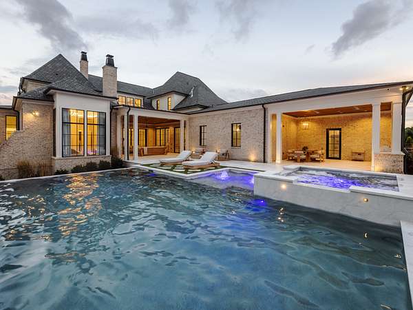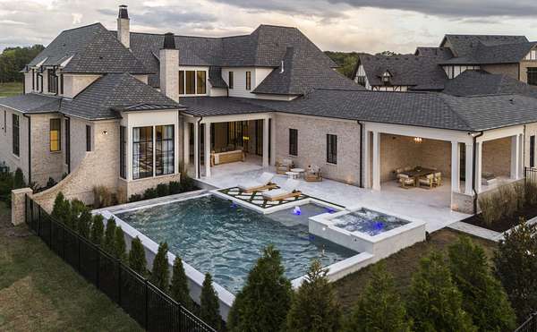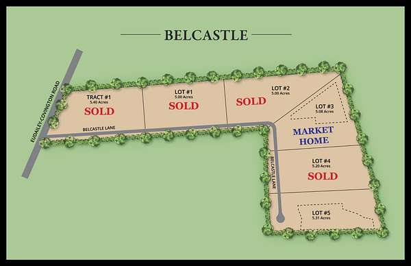 Set on 5 perfectly level acres and nestled against a serene tree line for ultimate privacy, this grand estate makes an unforgettable first impression with its stately elevation, striking gabled rooflines, and elegant porte-cochère. A large building envelope accommodates this stately home and pool, with ample room for outdoor entertaining, a future barn for your animals or party barn, or even a guest house—the possibilities are truly endless. Inside, thoughtfully curated finishes and refined design details create a warm yet sophisticated atmosphere. The main level features three spacious bedrooms, each with its own private bath and walk-in closet, along with a versatile bonus room complete with a built-in bar that seamlessly opens to expansive covered porches—highlighted by a cozy fireplace and a fully equipped outdoor kitchen, perfect for entertaining year-round. A dramatic two-story family room with a fireplace anchors the home, while the gourmet kitchen impresses with an oversized island, vaulted ceilings, and a fully functional working pantry. The luxurious primary suite offers a vaulted ceiling, private porch access, a fireplace, and a spa-inspired bath, along with an exceptional walk-in closet featuring a center island and direct access to the laundry room. Upstairs, enjoy a second laundry, abundant walk-in attic storage, and an additional vaulted bonus room with a half bath—ideal for guests, recreation, or a private retreat. Thoughtfully incorporated stacked closets on each level provide excellent additional storage today while also offering the flexibility to be converted into an elevator in the future, enhancing long-term convenience and accessibility. This home is perfect for your private estate & still convenient to interstate access. Hurry and make your own interior selections. Finished photos are representational photos of the Builder's work. Exterior photos of the home are renderings and not actual construction progress. Homesite perks for 10 bdrm.