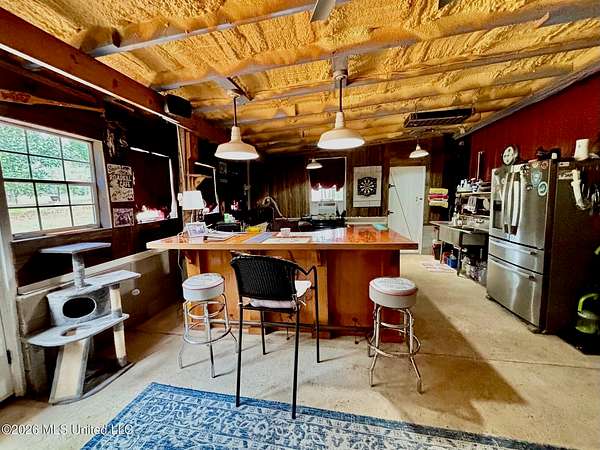 This one-of-a-kind rustic barndominium offers the perfect blend of country charm and modern comfort, set on a beautifully functional property in the highly sought-after North Pike School District in Summit, Mississippi. With 2,083 square feet of living space, this two-story home features 3 bedrooms and 3 full bathrooms, thoughtfully designed for both everyday living and entertaining. The interior showcases warm, rustic character with unique touches throughout, while the spacious layout provides flexibility for families of all sizes. A standout feature is the inviting bonus room/mancave, complete with a cozy wood-burning fireplace--perfect for relaxing evenings or hosting guests. The home is also equipped with a whole-house generator, offering peace of mind year-round. Step outside and enjoy everything this property has to offer. The fully fenced yard is ideal for livestock or pets, making it a true homesteader's dream. You'll find a chicken coop, greenhouse, and plenty of room to expand your outdoor lifestyle. Cool off in the above-ground pool, surrounded by a custom-built deck designed for summer gatherings and outdoor enjoyment. For those who love the outdoors, the property also includes two ponds and a deer stand, perfect for fishing or hunting right in your backyard. Need space for projects or storage? The 20x40 metal workshop on a slab foundation features a loft area, offering ample room for tools, hobbies, or equipment. Additionally, the property includes three RV hookups, making it ideal for visitors or additional income potential. This rare property combines rural living with modern convenience, offering endless opportunities to live, work, and play--all in one place.