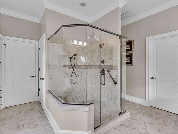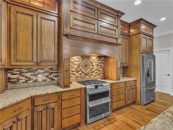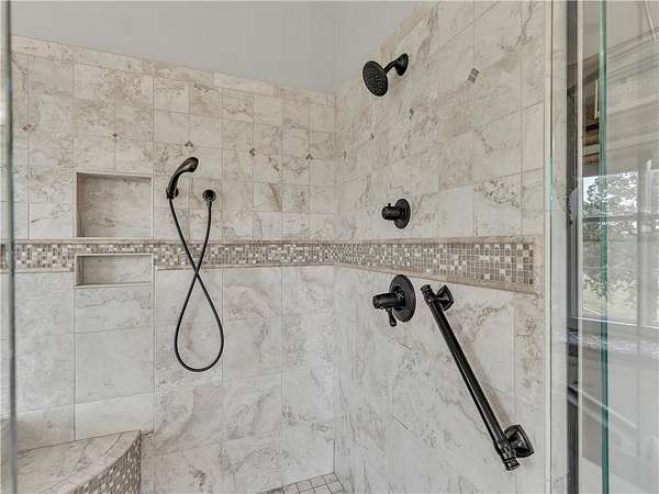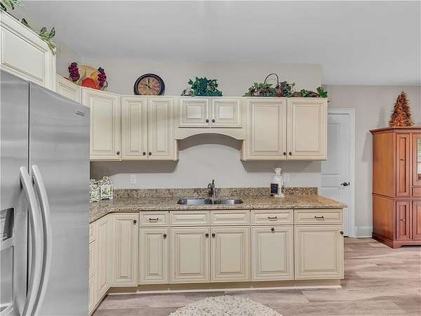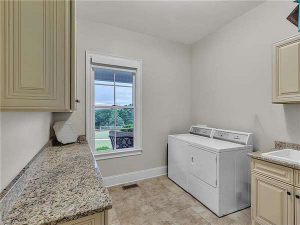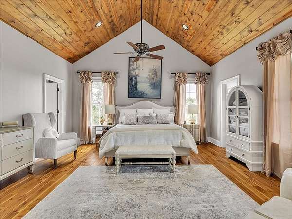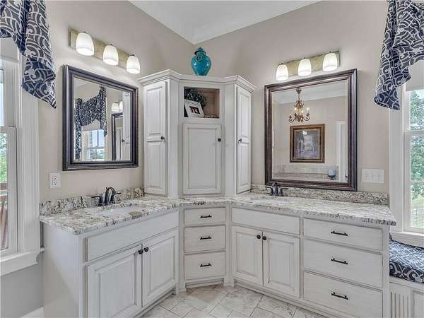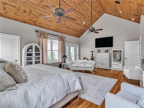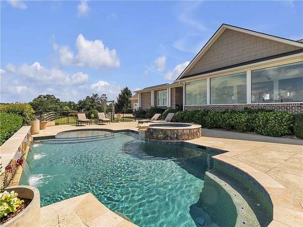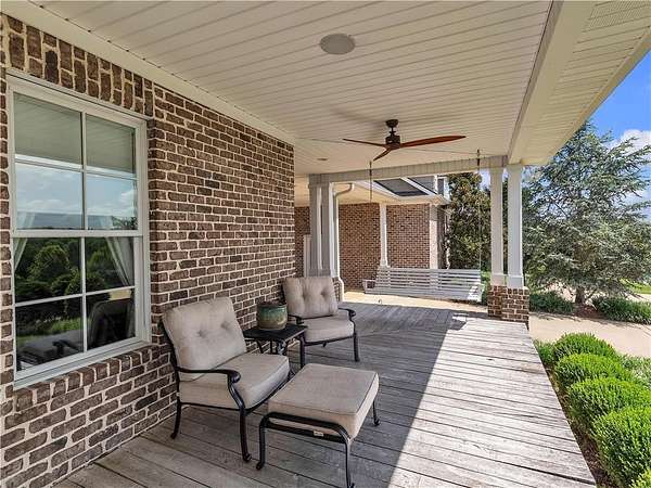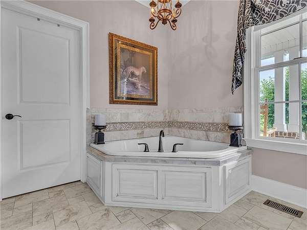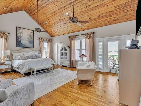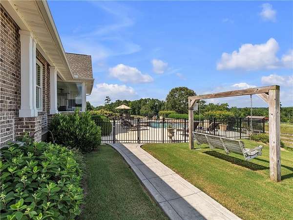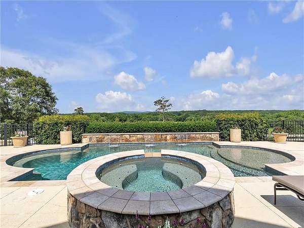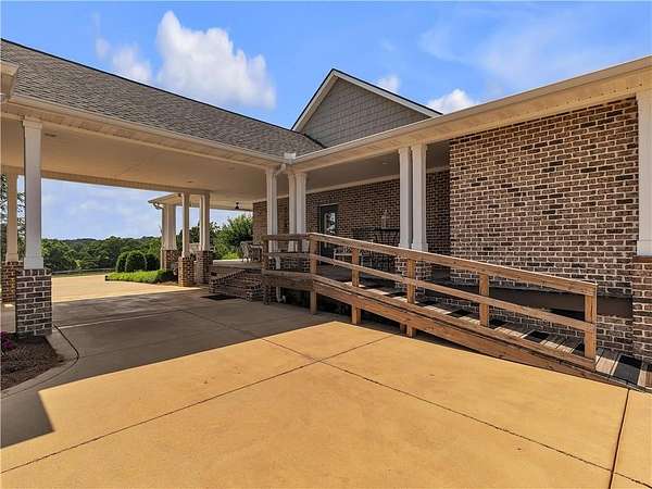 STEP INTO TIMELESS ELEGANCE! This impressive property features a stately front elevation and a beautifully manicured lawn, setting the tone for what's inside. A welcoming brick front porch with traditional columns and cozy sitting areas invites guests in. This custom-built home offers refined finishes, expansive living spaces, and stunning views from every angle. The main level boasts a light-filled open floor plan with warm hardwood floors, soaring wood-planked ceilings, and a grand stone fireplace anchoring the spacious living room. A dramatic chandelier and full-height windows frame sweeping landscape views, blending indoor luxury with outdoor beauty. The sunroom is a serene retreat that perfectly frames the rolling countryside through expansive picture windows, bringing in natural light and stunning views. Designed for comfort and relaxation, it features wood flooring, neutral walls, and ample space for multiple sitting areas. Whether you're enjoying a quiet morning coffee or gathering with guests, this bright and inviting space provides a seamless connection to the outdoors while maintaining year-round comfort. The gourmet kitchen is a chef's dream, featuring richly stained custom cabinetry, granite countertops, a striking tile backsplash, stainless steel appliances, and a large island with bar seating-ideal for both cooking and entertaining. An elegant formal dining room and adjacent sitting area create an inviting setting for gatherings. The oversized primary suite offers a serene retreat with vaulted wood ceilings, private access to the patio, and a spa-inspired ensuite bath. Here you'll find dual vanities with granite countertops, a built-in makeup station, a soaking tub, and a walk-through tile shower with multiple showerheads and a bench. Ample storage, custom built-ins, and designer touches complete the space. Additional guest rooms on the main floor are spacious and thoughtfully appointed, and the guest bathroom is beautifully updated with stylish cabinetry and tile finishes. Also enjoy the ease of electric shades on most of the main floor windows. The finished basement level expands your living and entertaining options with a partial kitchen, large recreation area, media space, game area, private guest suite, and a full bath-perfect for multi-generational living or hosting guests. In the backyard, a luxurious gunite in-ground pool with a raised spa and waterfall feature provides the perfect spot to relax and entertain, all set against panoramic countryside views. The beautifully manicured landscaping and fenced pastures enhance the serene setting, while multiple seating areas and walk-out basement patio add to the home's functionality and flow.. The spacious driveway includes a breezeway that connects to a detached two-car garage offering even more convenience. Additional parking space in the back ensures plenty of room for guests or multiple vehicles. Tucked away in a peaceful setting just minutes from town, this exceptional property offers the perfect blend of privacy and convenience.