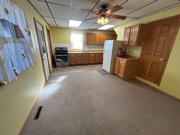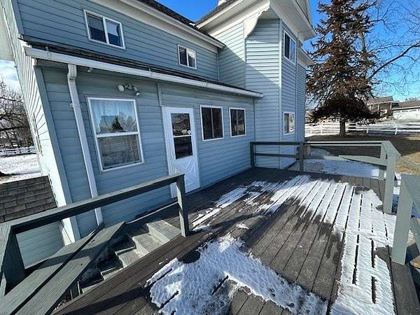 Est $1,082/moIn-town acreage opportunity. Situated on just over 1.8 acres, this 3 bedroom/2 bath home is a rare find in town. There are vinyl windows, main floor laundry, nice sized composite deck and more. It features a newer garage/shed with space for a couple of cars that is set up for many possibilities. The lot is fenced in. Property is being sold "as-is" with no warranties expressed or implied. For having livestock animals, please check with city for code and regulations. Call to take a look.