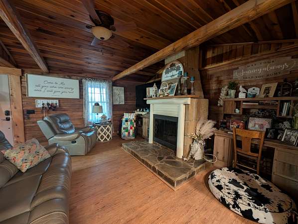 Discover the beauty and craftsmanship of this one-of-a-kind 84.16-acre retreat featuring a 3-bedroom, 2-bath log home constructed from poplar lumber milled directly from the property. Thoughtfully designed, the approximately 1,600 sq ft residence showcases custom built-ins crafted from on-site lumber, creating a warm, authentic feel throughout. Take in breathtaking views of the surrounding hills from two covered porches, a patio, and a spacious deck - the perfect setting for relaxing evenings under the glow of ambient lighting. Pella double-pane windows enhance energy efficiency while framing the scenic landscape. The property offers approximately 6+ acres of meadowland along with excellent hunting opportunities, making it ideal for outdoor enthusiasts. Multiple additional structures add versatility and value, including a workshop, storage buildings, a three-story barn, a charming 1800s century home, and a cellar house. Limited free gas rights, per owner, will convey to the buyer. Move-in ready and privately situated, yet conveniently located just 15 minutes from downtown Grantsville, this exceptional property offers peaceful country living with endless possibilities.
