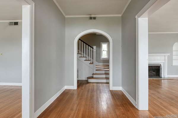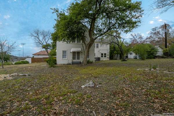 This property has frontage off Ogden and Viesca. Could be an excellent candidate for replat at still have 2 lots in the .3 acre range. Wonderful opportunity to purchase .67 of an acre in the heart of Alamo Heights. Imagine building a new home or private compound off Ogden (the existing main home on the property faces Viesca). The unique triangular lot opens up from Ogden toward Viesca and many possibilities exist for creating privacy from the street while still benefitting from close proximity to the beloved neighborhood pool, parks and nature trails. The location is central to the incredible recreational amenities Alamo Heights offers. The large lot also has potential to be divided into multiple buildable homesites. The property has two structures-the 2 story home is vacant (but recently rented) and the smaller structure is tenant occupied on a month to month lease. Recent tasteful new construction on the street makes this building site an ideal location for your dream home. Seller is excluding some architectural items from the home, specifically the stained glass window, doors and doorknobs.