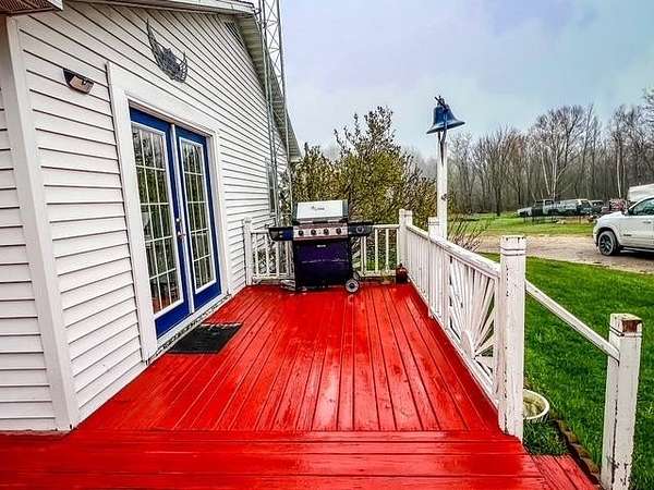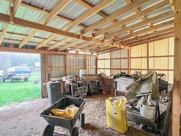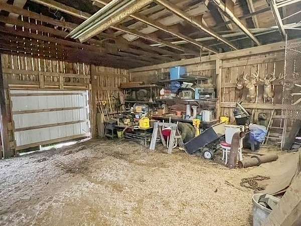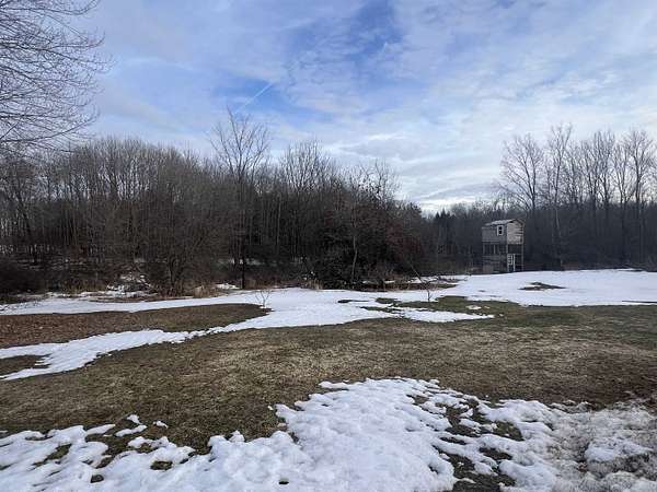 Set on 15 beautiful acres (taxed as 13.9 due to road right-of-way), this hilltop country retreat offers space, privacy, and endless possibility. The charming 2-bedroom home welcomes you with a spacious eat-in kitchen, a light-filled living room, and countryside views from the deck that make every season enjoyable. A full walkout basement includes 1-car garage providing excellent storage and functionality. Perfect for hobby farming, recreational use, or simply embracing wide-open space, the property also features an impressive 26x42 detached garage ideal for equipment, workshop space, or potential livestock shelter. Major improvements offer peace of mind, including 200-amp electric service with a 22KW Generac generator, new well pump motor and bladder, rebuilt well house, septic pumped in 2021, new furnace in 2022, and freshly painted living areas and decks. Situated on a paved corner for easy year-round access, this property is ready for your next chapter in country living.