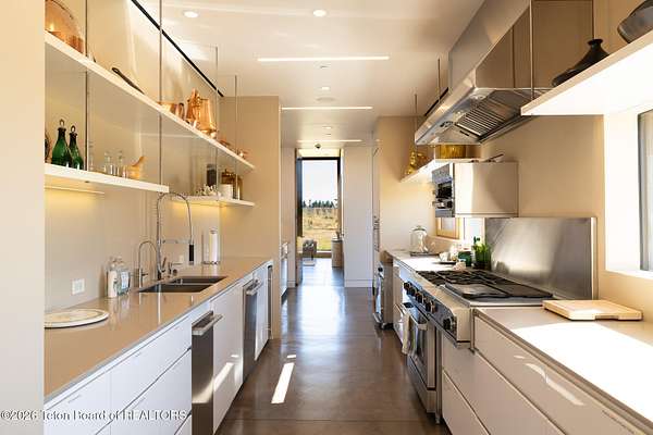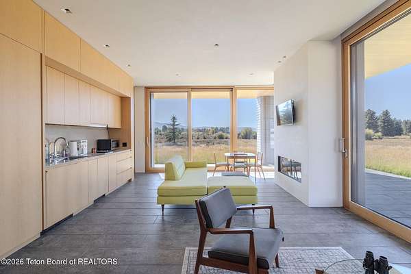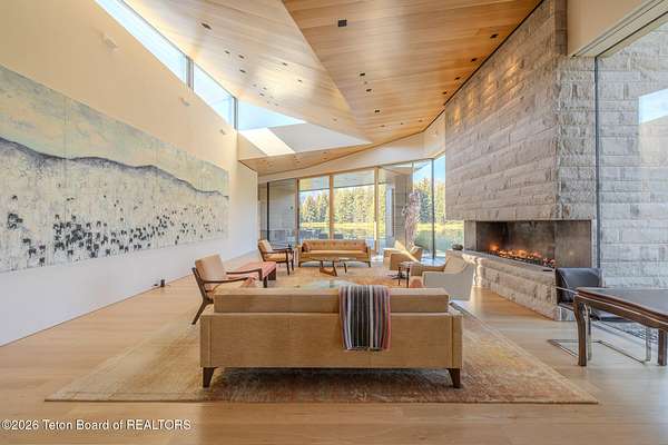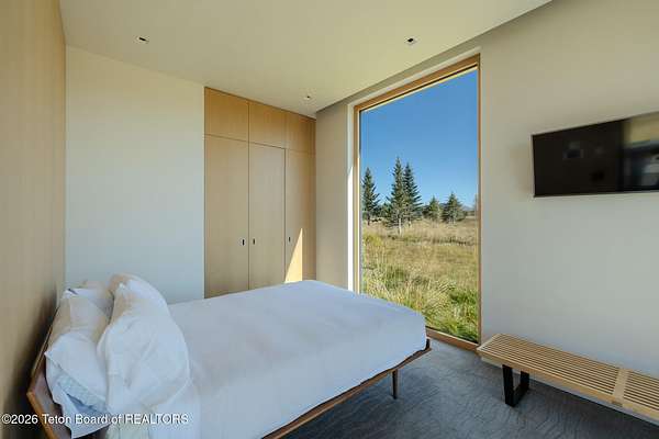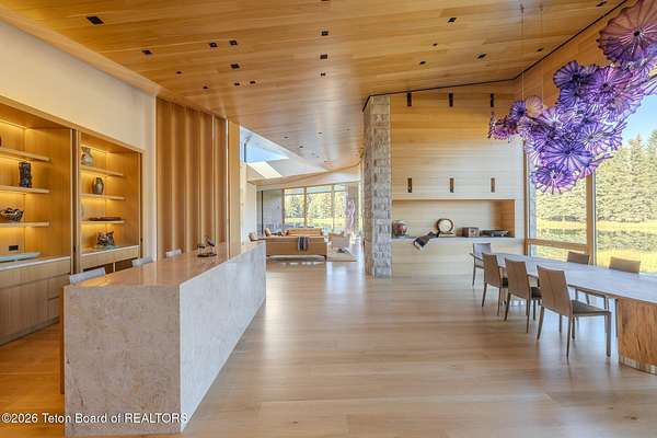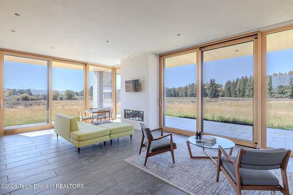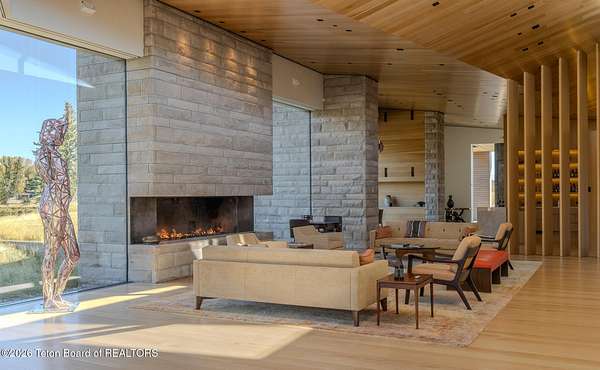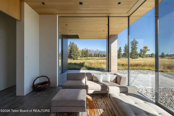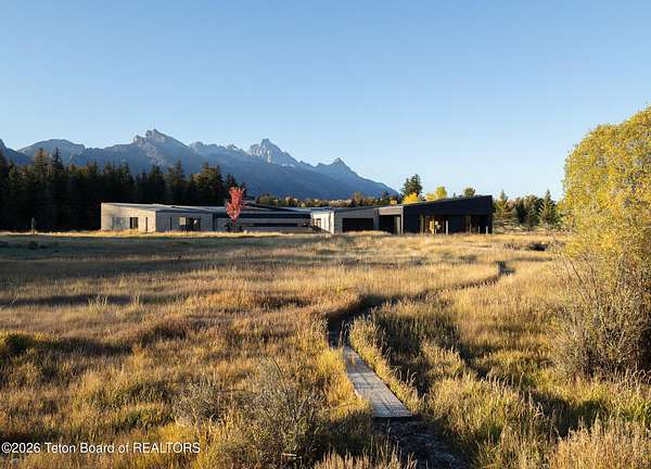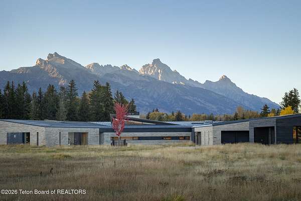 Set in the exquisite Bar B Bar Ranch, this 36-acre horse-friendly property boasts magnificent Grand Teton & Sleeping Indian views, live water & wonderful privacy. The quaint homestead cabin, a horse barn & 2 loafing sheds add western flair & historic charm. Designed by CLB Architects, the 7,587 sf custom home showcases state-of-the art finishes & systems in a low profile, minimalistic design including Case optical glass windows, geothermal heating & cooling, solar energy and snow melt systems. Featuring a unique design separating ''back-of-house'' functions from formal living spaces, the home is ideally suited to lifestyle with live-in staff. Other highlights include:1,172 sf garage, and a 830 sf, 1 br, 1 ba guest house. Discover the peaceful beauty of this exceptional Bar B Bar Ranch oasi