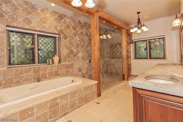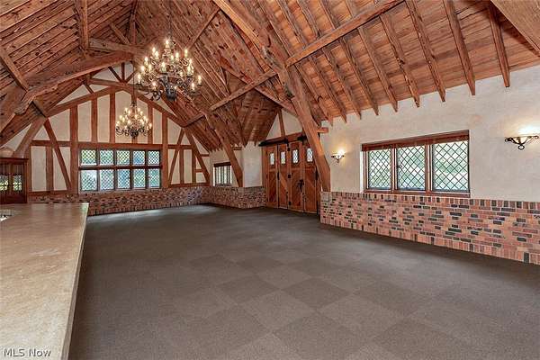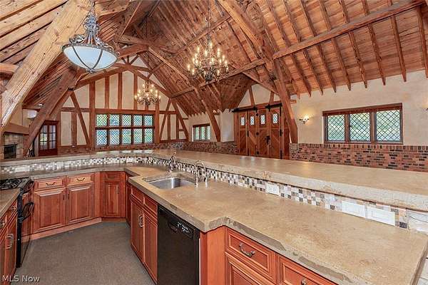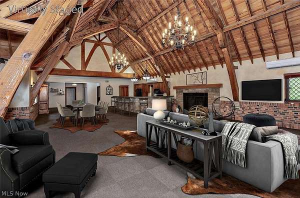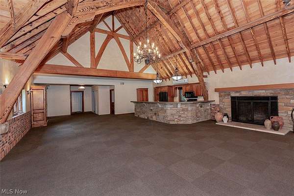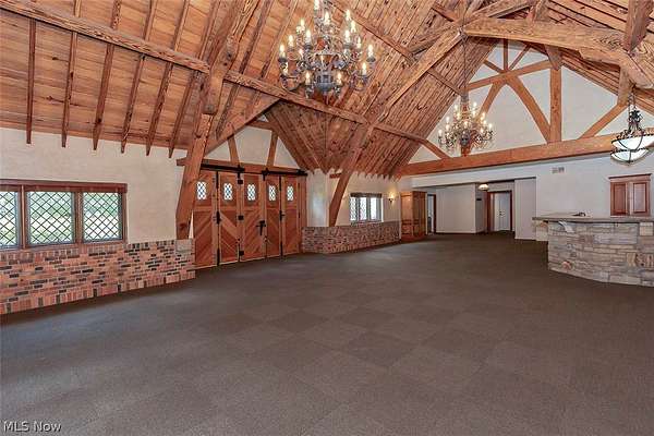 - Beamed Ceilings, Cathedral Ceilings, Chandelier, Double Vanity, High Ceilings, Open Floorplan, Stone Counters, Vaulted Ceilings