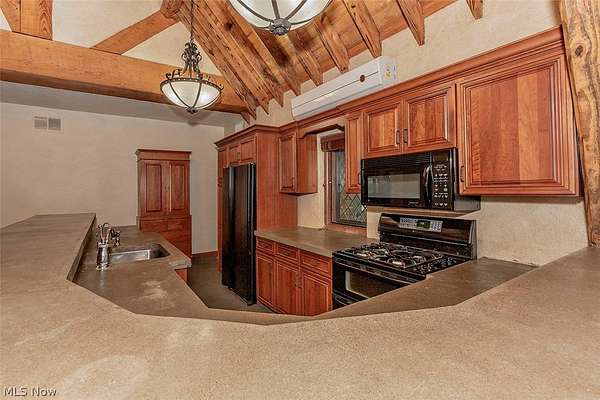 Incredible opportunity to rent a truly exceptional home, set on nearly 10 private, gated acres. This unique 3 bedroom, 2.5 bath home offers a one-of-a-kind living experience from the moment you walk through the front door. You'll be in awe of the soaring two-story ceilings, expansive great room with striking beam details and a beautiful wood burning fireplace that creates a warm, inviting atmosphere. With radiant heating, the floors feel nice and warm all year long. The fabulous open kitchen allows for great entertaining and everyday living with stone counter tops and great appliances. Beautiful master bathroom with extra large walk-in shower, double sinks, and soaking tub. The heated floors are a luxurious bonus. The attached garage for 1 car provides convenience, while the serene setting offers peaceful park like setting and privacy- all in a fantastic location. Minutes away from downtown Chagrin Falls, desirable location close to shopping, dining, and major highways. This is a rare and remarkable opportunity to call this home.